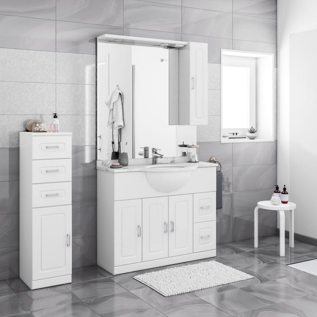 Questo mobile da bagno EUGAD è ideale per ottimizzare lo spazio! Alto 160cm e stretto (30x28.5cm), ha 2 cassetti, 3 scomparti aperti e un vano con anta. I ripiani sono regolabili, e le gambe in metallo rialzate resistono all'umidità. Finitura bianco lucido facile da pulire, con maniglie lineari eleganti. Supporta fino a 50kg e ha un dispositivo antiribaltamento. Montaggio semplice con manuale incluso. Perfetto per piccoli bagni: organizza tutto con stile!Caratteristiche e scheda tecnica