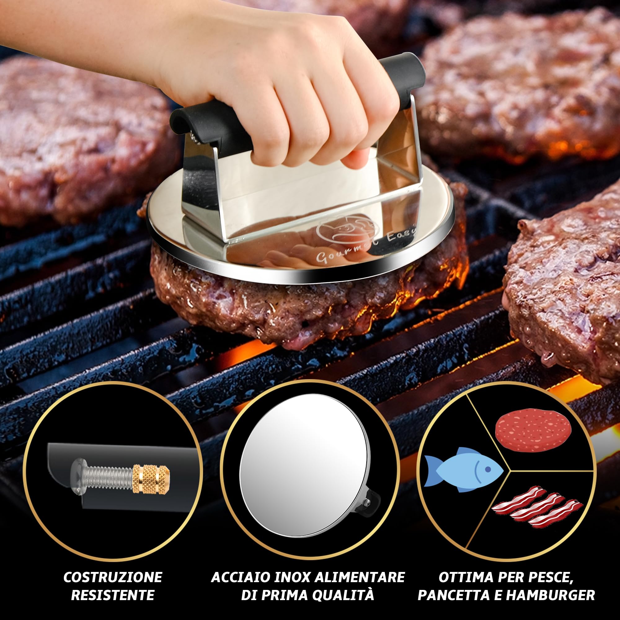 Pressa Per Carne In Ghisa - Per Hamburger, Bistecche E Pancetta, Griglia Antiaderente