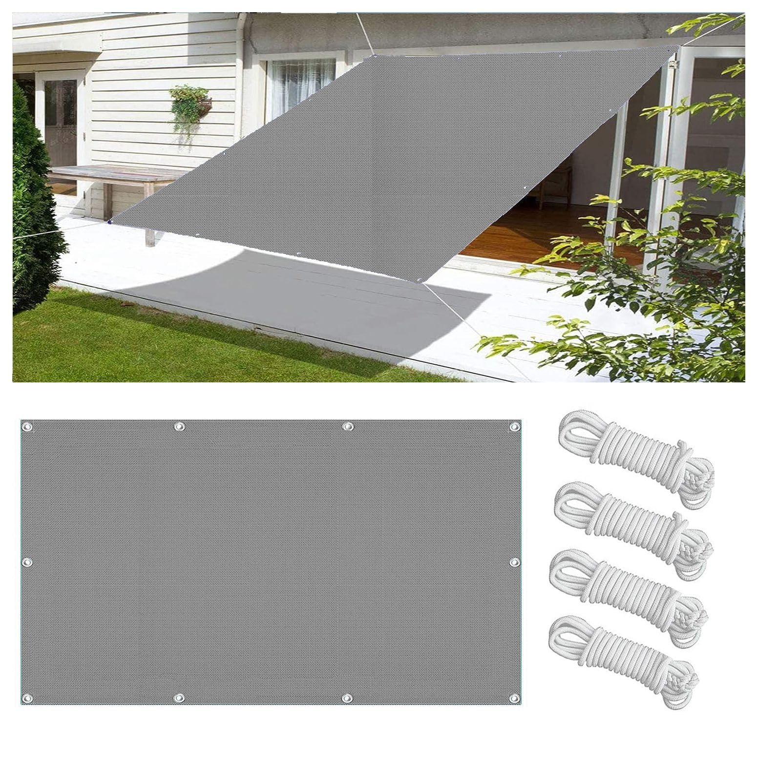 Questa tenda a vela HAIKUS è perfetta per creare ombra in giardino! Misura 3x4m (400x300cm), in poliestere 160g/m² con rivestimento PU impermeabile. Blocca il 98% dei raggi UV. Ogni angolo ha un anello in acciaio inox e una corda da 1.5m per installazione facile. Si consiglia di installarla con due angoli più alti per far scorrere la pioggia. Ideale per terrazzi, piscine, parcheggi. Non usare con vento forte. Grigia ed elegante, aggiunge stile al tuo spazio esterno. Garanzia 30 giorni. Goditi l'ombra senza preoccupazioni!Caratteristiche e scheda tecnica