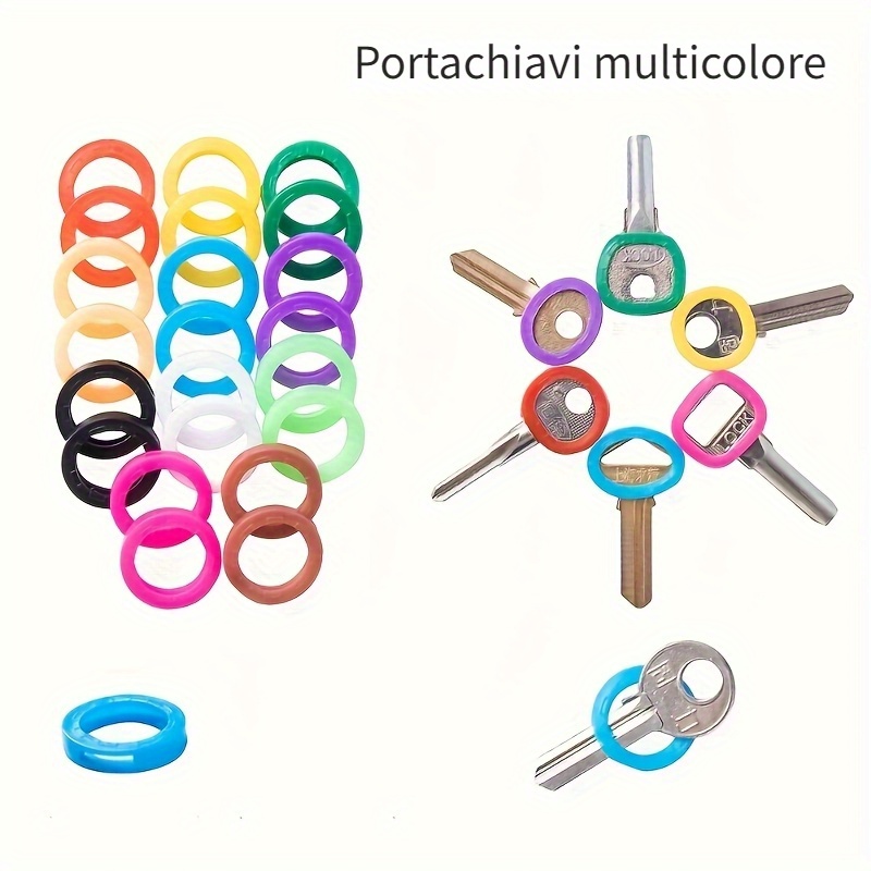 100x Etichette Portachiavi In Plastica - 10 ColorI - Con Anello Metallico - Per Chiavi, Valigie E Animali