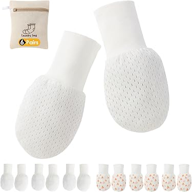 Questi guantini antigraffio sono un salvavita per i neonati! Confezione da 4 paia in colori tenui (rosa, blu, grigio, a righe), in cotone e spandex super morbido. Polsino elastico per tenerli ben saldi senza stringere, permettendo alle dita di muoversi. Dimensioni 6.5x10.5 cm, adatti dalla nascita. Perfetti per evitare graffi accidentali o che il bimbo si mordicchi le mani. Confezionati come regalo, ideali per baby shower o nascite. Pratici, carini e sicuri.Caratteristiche e scheda tecnica