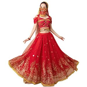 Costume Danza Del Ventre Bambina Con Paillettes - Top E Gonna Coordinati Per Ballo Latino, Pattinaggio E Esibizioni
