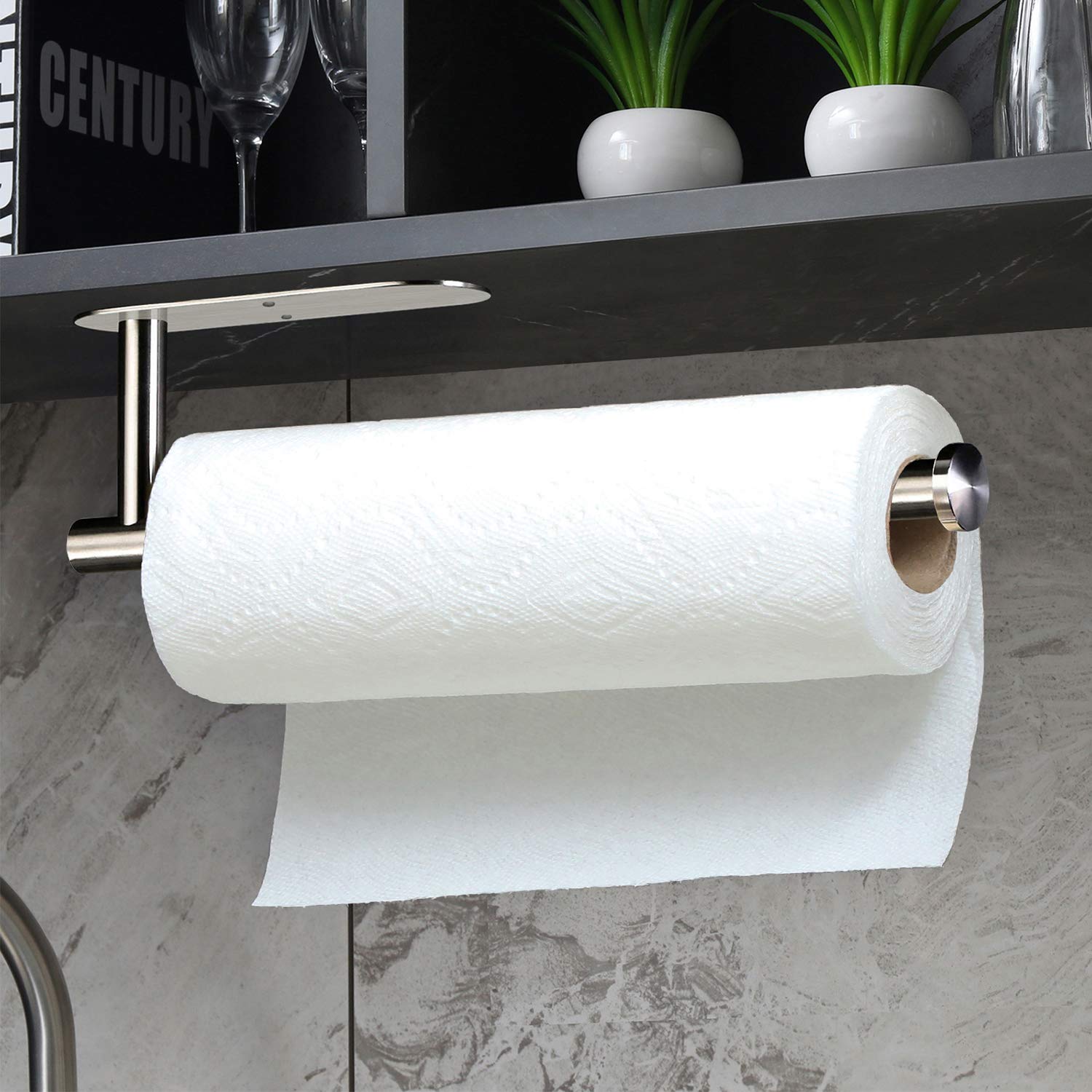 2 Portarotolo Da Cucina Senza Foratura - Nero Per Sottopensile E Parete