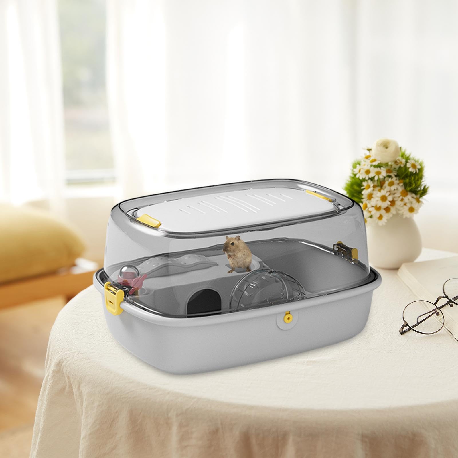 Questo bagno di sabbia è perfetto per i tuoi piccoli amici! Per criceti, gerbilli, ratti e altri roditori. In plastica robusta e facile da pulire, misura 14.5x10x10 cm. Ha un design anti-spruzzi per contenere la sabbia, e si smonta in due parti per lavarlo bene. Include una paletta. I animali lo adoreranno per rotolarsi e pulirsi il pelo. Aiuta a ridurre lo stress e mantenere la gabbia più igienica. Un accessorio divertente e utile per ogni amante degli animali.Caratteristiche e scheda tecnica