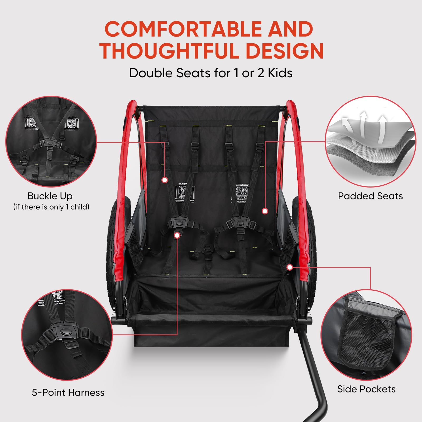 Tiggo VS 50202 - Rimorchio Bici E Passeggino 2 In 1, Per 1-2 Bambini, Capacità 40kg