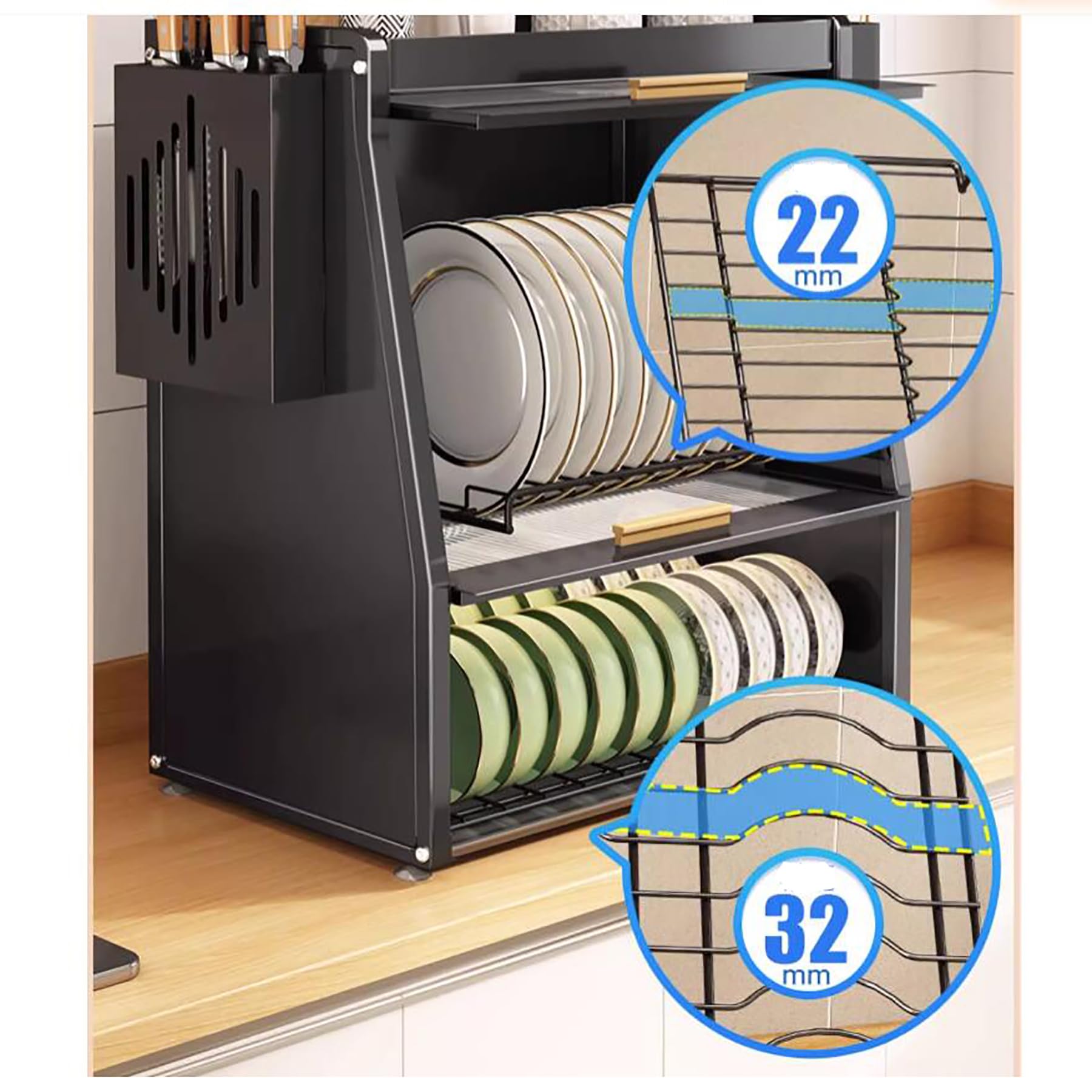 Scolapiatti A 2 Livelli MAJALiS - Acciaio Inox Con Portabicchieri E Portautensili | Nero