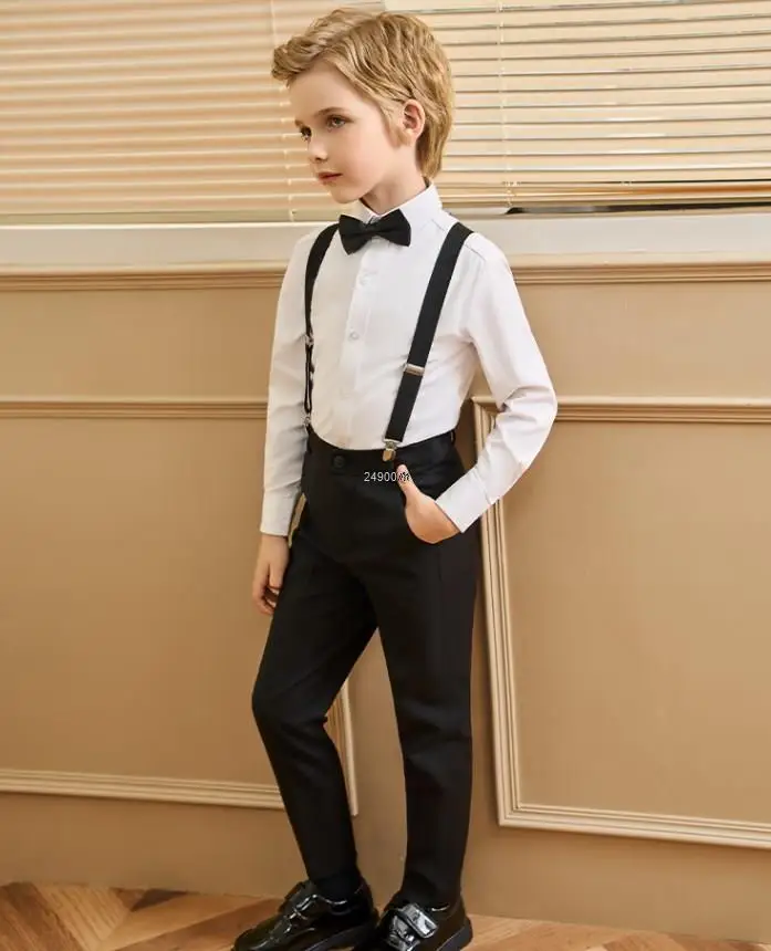 Questo completo da gentiluomo per bambini è adorabile! Include camicia, pantaloni, gilet e fiocco, tutto in cotone 100% morbido e comodo. Disponibile in taglie da 12 mesi a 6 anni, con misure precise per una vestitura perfetta. Perfetto per battesimi, matrimoni, compleanni o foto ricordo. I pantaloni hanno l'elastico in vita, facile da indossare, e il look è raffinato ma pratico. Il tuo bimbo sembrerà un piccolo lord inglese!Caratteristiche e scheda tecnica