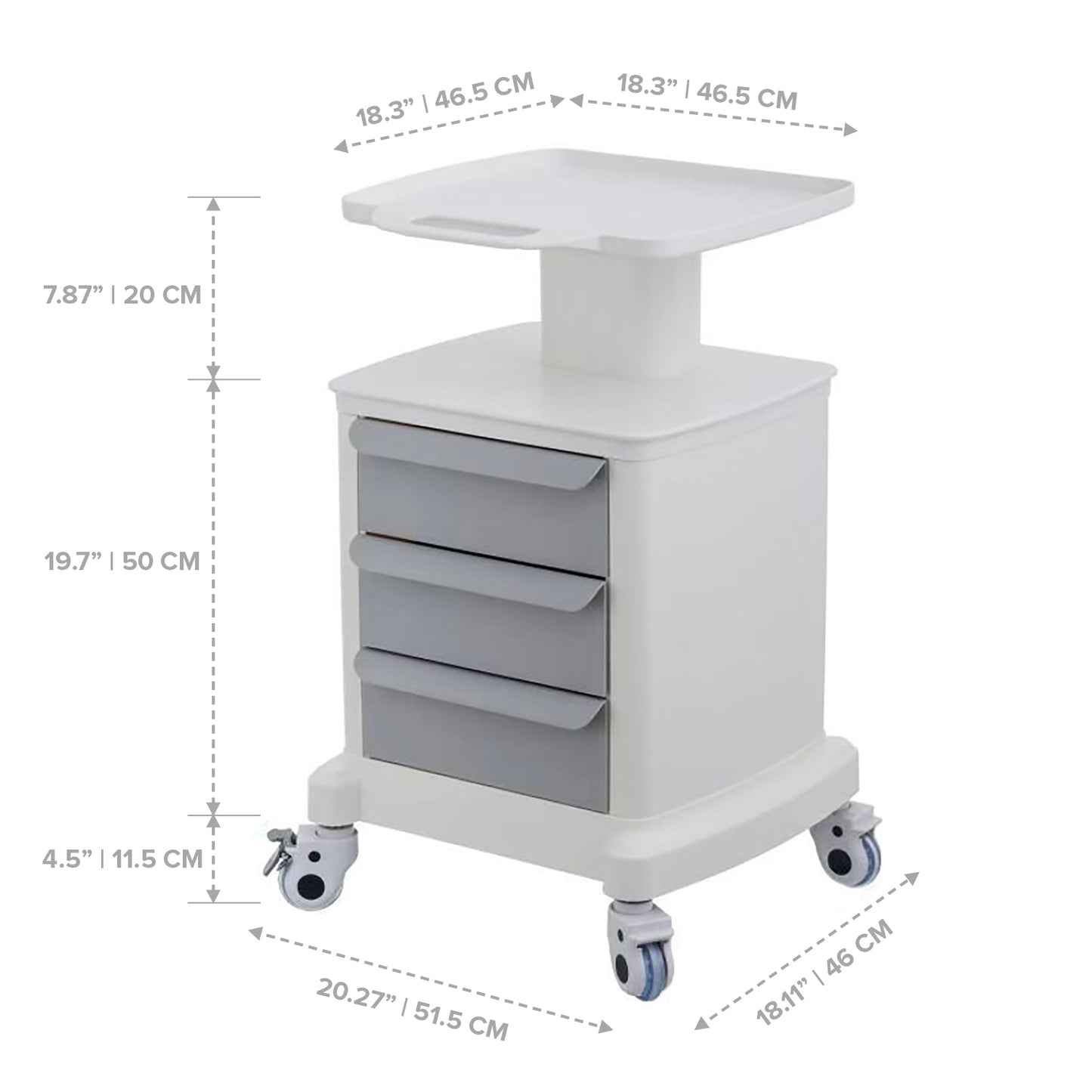Questo carrello è super pratico per ospedali, laboratori, ma anche per casa o salone! Ha due ripiani (uno superiore largo) e un cassetto sotto, tutto in ABS resistente e facile da pulire. Le ruote sono silenziose e due si bloccano per fermarlo dove vuoi. Porta fino a 50 kg, quindi ci carichi di tutto: strumenti, medicinali, prodotti beauty... Il manico ergonomico lo rende facile da spostare. Ideale per organizzare e avere tutto a portata di mano. Design pulito e professionale – un aiuto indispensabile!Caratteristiche e scheda tecnica