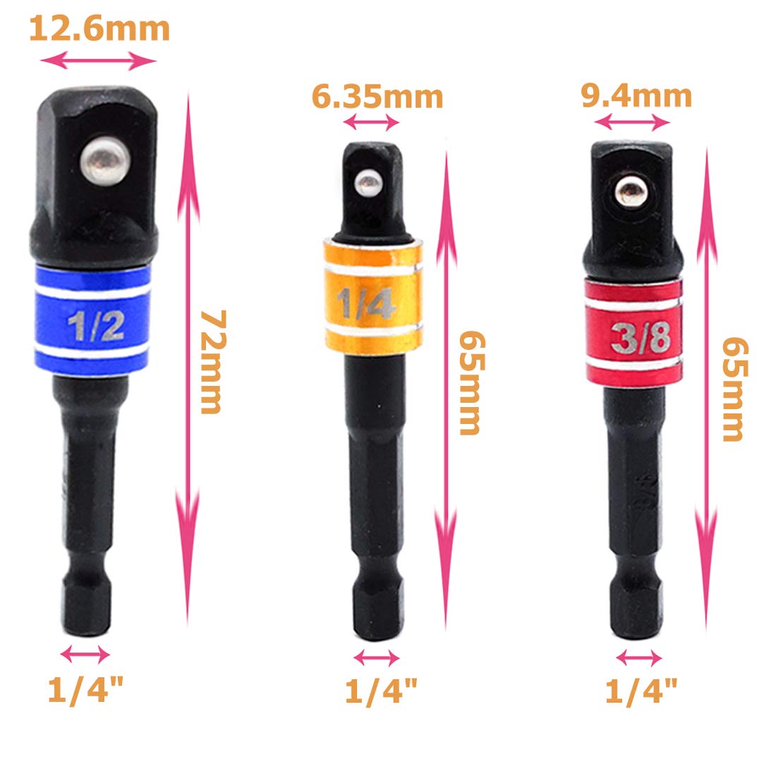 Set di 2 adattatori per utensili, che convertono una presa da 1/4\ femmina a 1/2\ maschio. Realizzati in acciaio al cromo vanadio trattato termicamente e finitura cromata, quindi resistenti alla corrosione e duraturi. Gli angoli arrotondati evitano stress e crepe, mentre il fermo a sfera tiene saldamente le prese evitando che cadano. Lunghezza totale: 27mm. Perfetti per lavori di bricolage, manutenzione domestica, auto o officina. Le tacche di bloccaggio si agganciano bene a cricchetti e prolunghe. Piccoli, ma fondamentali per chi ha tanti attrezzi!Caratteristiche e scheda tecnica