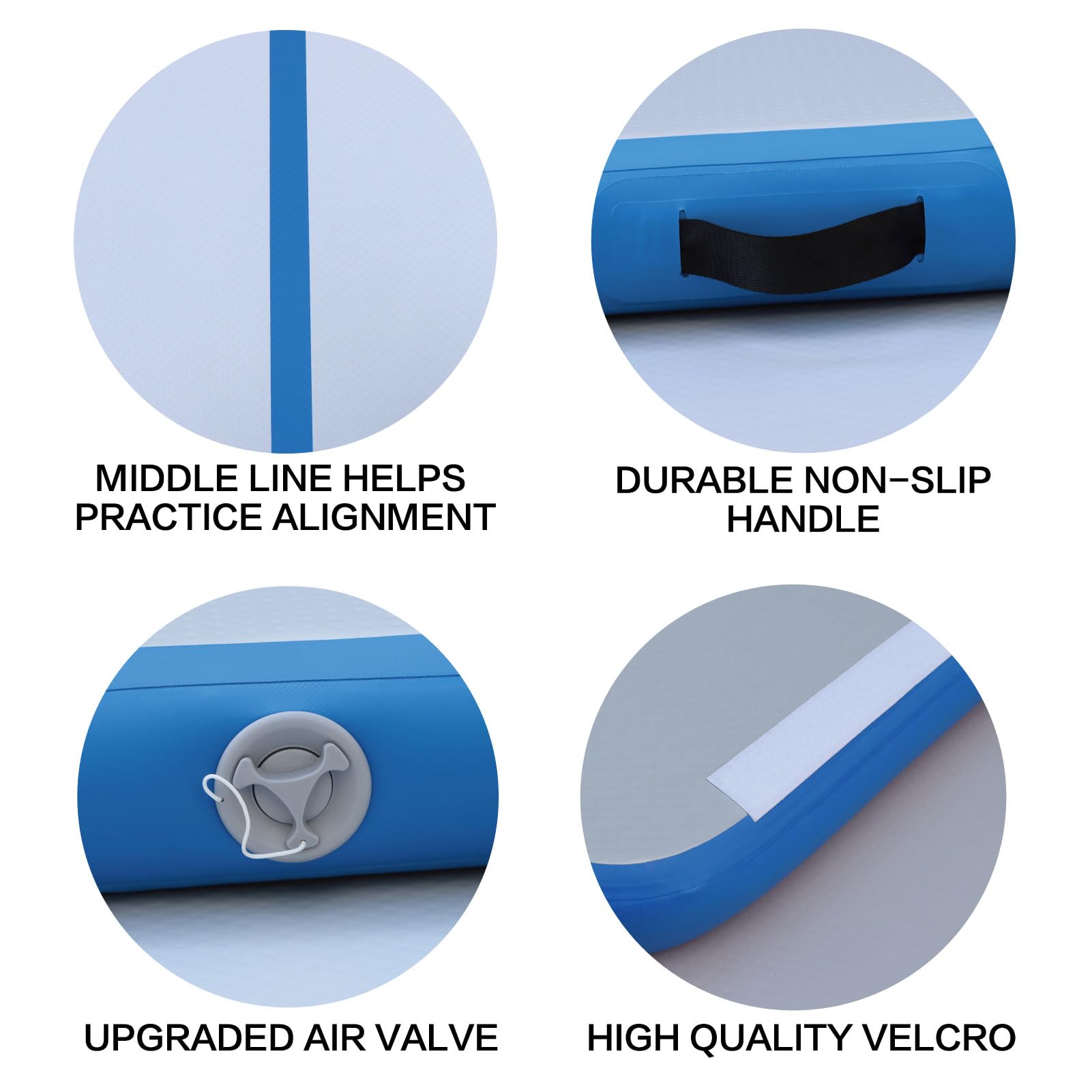 Praticissimo tappetino gonfiabile per fare sport comodamente! Misura 4 metri x 1 metro ed è spesso 10 cm - ammortizza benissimo e non fa male alla schiena. Si gonfia in un minuto con la pompa elettrica inclusa (funziona a 220V). È fatto di PVC resistente, impermeabile e facile da pulire. Lo puoi usare in giardino, in spiaggia, in palestra o anche a casa per yoga, pilates o allenamenti. Quando non ti serve, si sgonfia e piega in poco spazio - comodissimo da trasportare o riporre. Nella confezione trovi: il tappetino, la pompa elettrica, una toppa per riparazioni, chiave di manutenzione e manuale (in inglese). Attenzione: non gonfiarlo troppo al sole per evitare che si scoppi. Se si buca, si ripara con la colla e la toppa. È verde menta, un colore carino e rilassante. Pesa 14,5 kg ma è maneggevole. Ideale per adulti e bambini. Perfect per estivi all'aperto! Ordinalo ora e inizia ad allenarti sul morbido.Caratteristiche e scheda tecnica