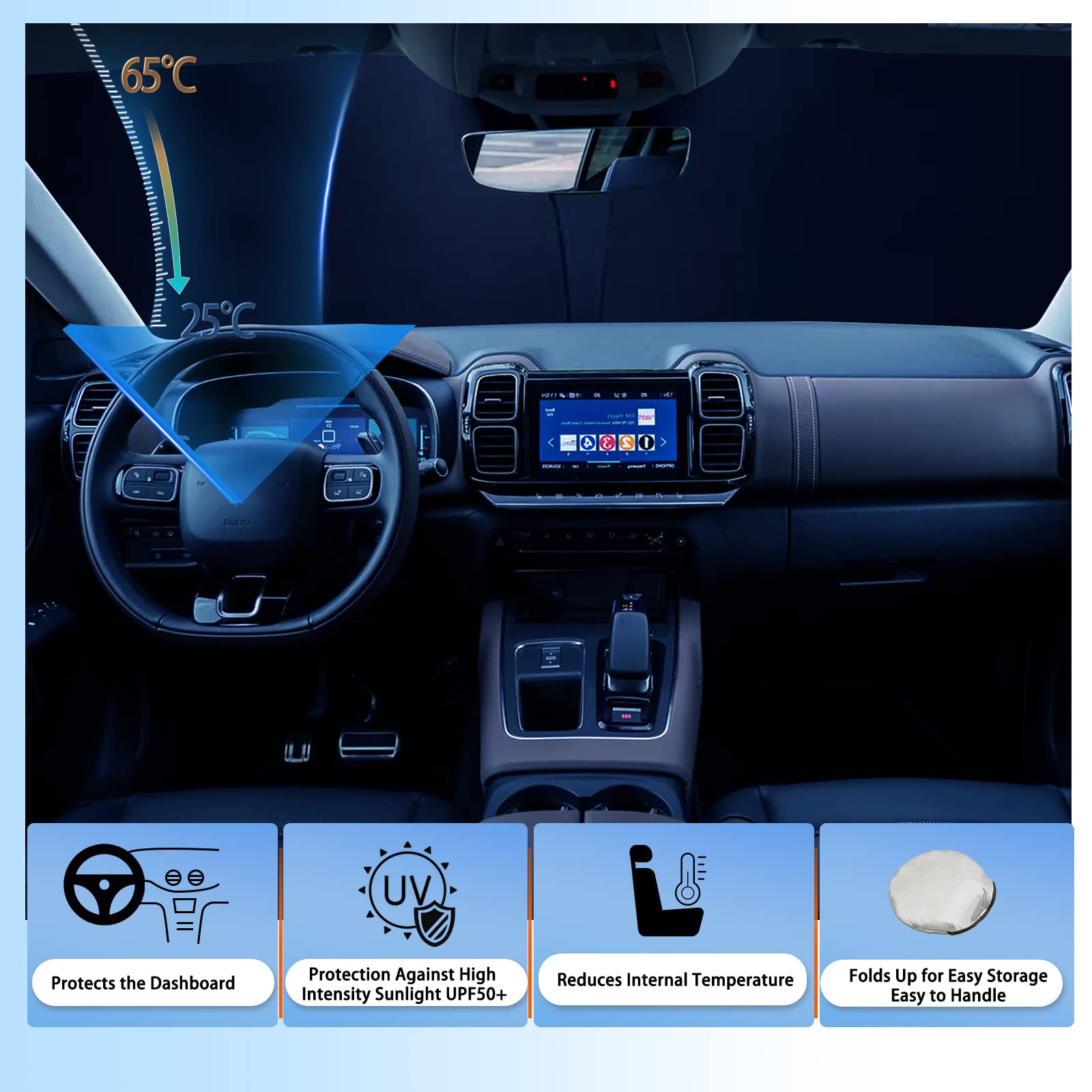 Parasole Auto Pieghevole 150x70cm - Protezione UV Per Parabrezza, Adatto Per Auto E SUV