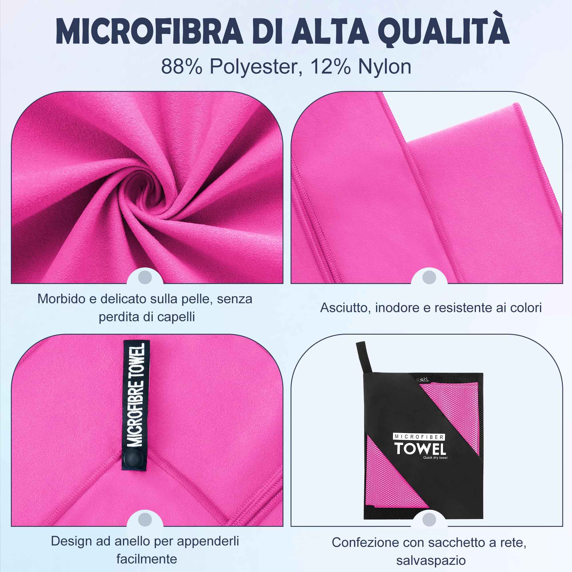 Questo asciugamano è fantastico per chi è sempre in movimento! Di microfibra, si asciuga super in fretta e si compatta in una piccola custodia (inclusa). Leggero e assorbente, perfetto per sport, viaggi, spiaggia o palestra. Ferrino è un brand italiano di qualità, e si vede. Lo lavi in lavatrice senza problemi. Unisex, quindi va bene per tutti. Se cerchi praticità senza rinunciare alle performance, questo è l'asciugamano che fa per te. Prezzo onesto per un prodotto top!Caratteristiche e scheda tecnica
