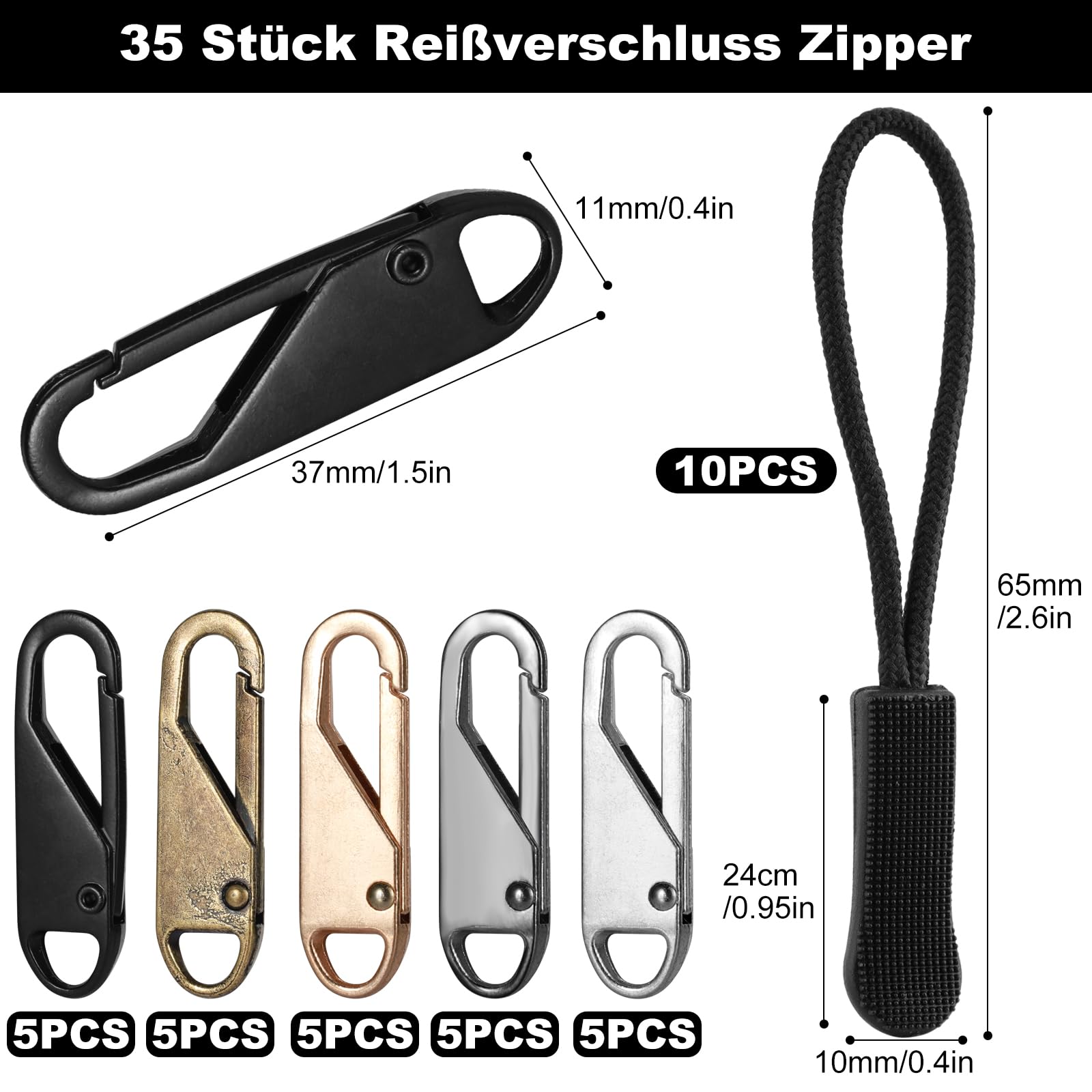 12 Cursori Per Cerniera - 3 Misure Diverse - Ricambio Per Vestiti, Jeans E Valigie - Facili Da Applicare