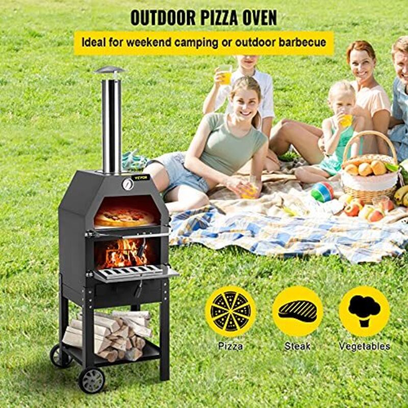 Forno per pizza da esterno VEVOR da 12 pollici! Funziona a pellet, trucioli o carbone, raggiunge i 1000°F in 15 minuti. Cotta la pizza in 90 secondi! Leggero e pieghevole, include pietra per pizza, pala e copertura. Perfetto per giardino, campeggio o feste. Cucina anche carne e verdure. Divertimento garantito!Caratteristiche e scheda tecnica
