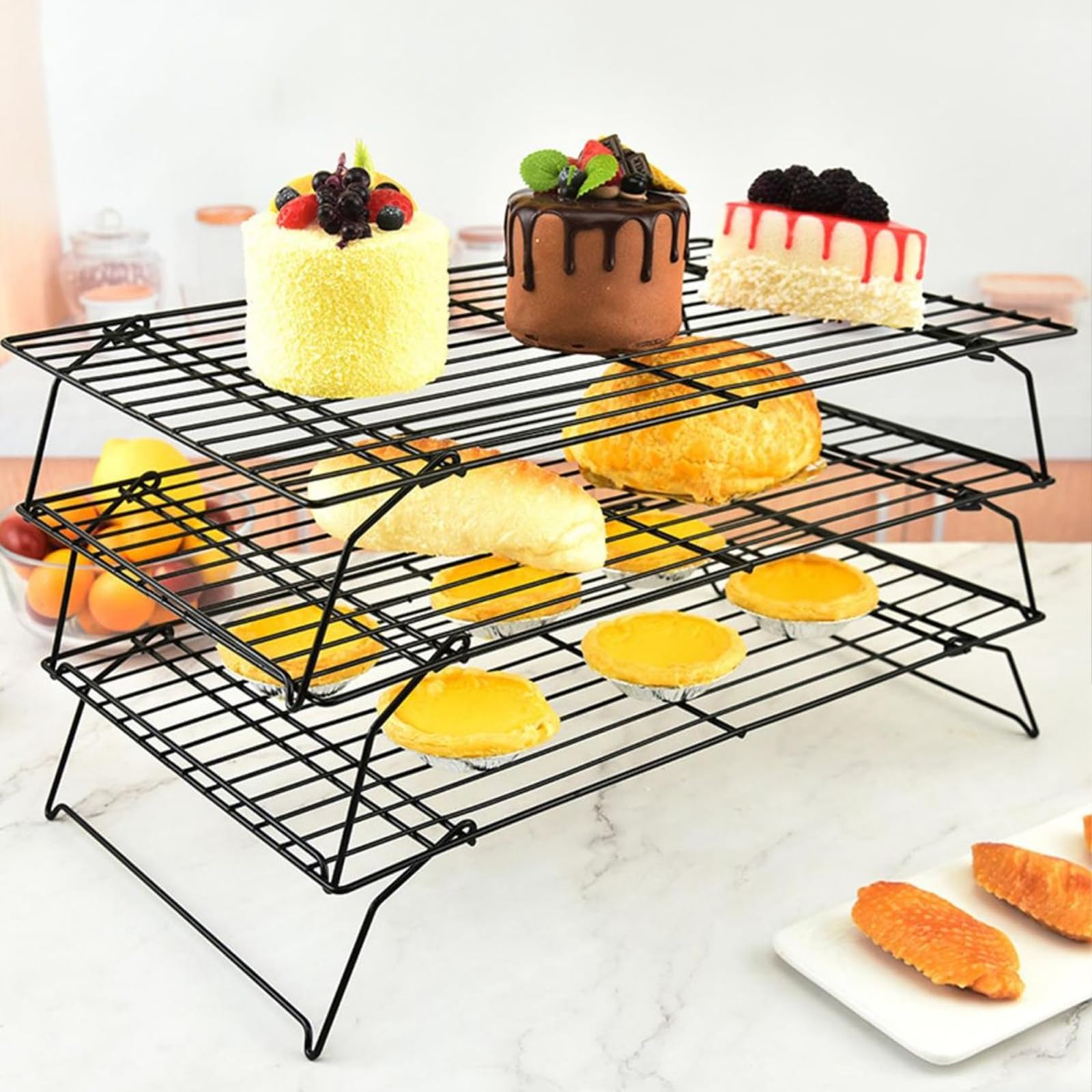 Queste griglie sono indispensabili in cucina! Le uso per far raffreddare torte, biscotti e pane appena sfornati. In acciaio inox alimentare, resistenti fino a 230°C e lavabili in lavastoviglie. I piedini alti 1.5 cm permettono all'aria di circolare sotto, così i dolci non si ammorbidiscono. Misure 29.3x22.3cm, grandi abbastanza per diverse preparazioni. Le uso anche per grigliare verdure o come supporto per cotture al forno. Confezione da 2, così ne ho sempre una pulita. Durano nel tempo e non si deformano. Consigliatissime per chi ama cucinare!Caratteristiche e scheda tecnica