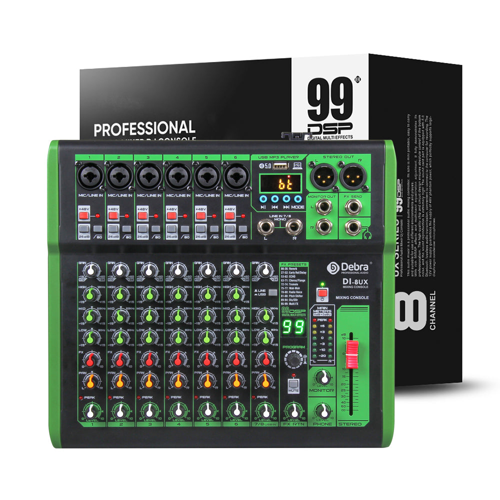 Questo mixer è un mostro di potenza! Ha 7 canali: 5 mono per microfoni, 1 stereo e ingresso USB. C'è il Bluetooth per collegare phone o tablet, e l'alimentazione phantom 48V per microfoni professionali. Ogni canale ha EQ a 3 bande, effetto riverbero e 6 modalità musicali. L'uscita è pulita, il rumore è basso e la costruzione in metallo è duratura. Perfetto per DJ alle prime armi, karaoke, streaming o piccoli eventi. Attenzione: serve un amplificatore esterno! Ma per il prezzo, ha un sacco di funzioni. Ideale per chi vuole iniziare senza spendere troppo.Caratteristiche e scheda tecnica