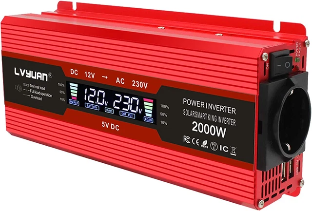 Questo inverter è potentissimo! Converte la corrente da 12V/24V/48V/60V DC a 220V AC con un'uscita continua di 2000W e picco di 12000W. Ha un'onda sinusoidale pura, quindi è adatto per apparecchi elettronici sensibili. Dotato di display LED per monitorare la tensione, ventola di raffreddamento intelligente e silenziosa, e protezioni da sovraccarico e bassa tensione. Perfetto per auto, camper, barche, sistemi solari o emergenze. Si collega a batterie o pannelli solari e alimenta tutto: da telefoni e laptop a frigoriferi e utensili. Facile da usare e affidabile. Include manuale e garantisce prestazioni professionali.Caratteristiche e scheda tecnica