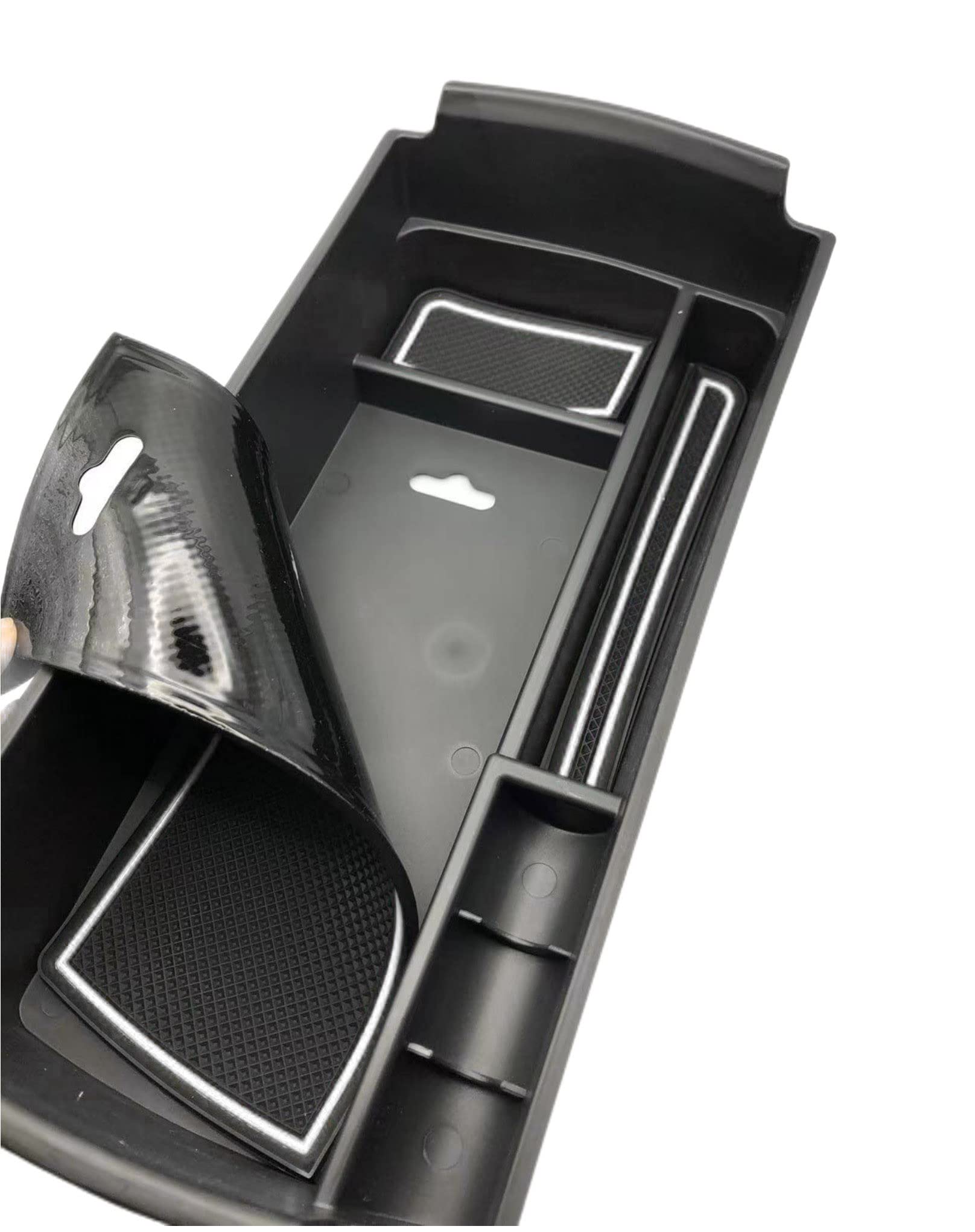 Se hai una Suzuki Jimny col cambio manuale (dal 2018 in poi), questo organizzatore per il bracciolo ti cambierà la vita! Finalmente un posto dove mettere chiavi, monete, accendini e altre piccole cose che finiscono sempre nel fondo dell'auto. È in plastica resistente e include 3 tappetini in gomma (rosso, blu e bianco) per evitare che gli oggetti scivolino. Si installa in un attimo senza modifiche. Tieni l'auto ordinata e tutto a portata di mano. Attenzione: non va bene per il cambio automatico!Caratteristiche e scheda tecnica