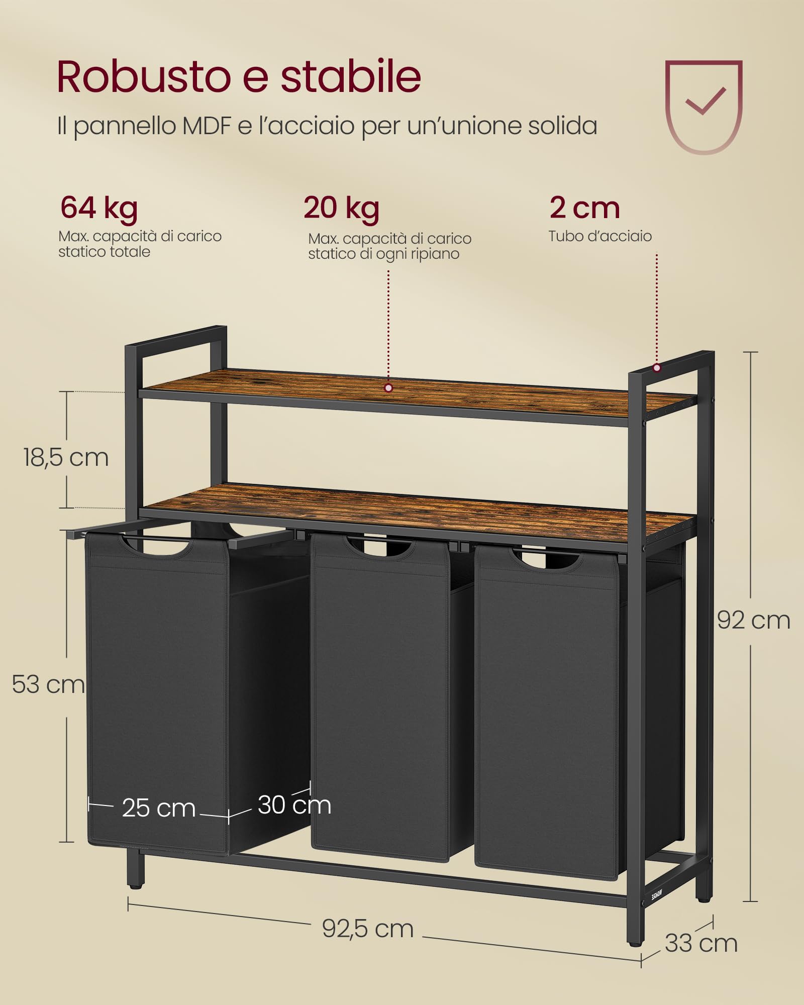 Questo carrello per la biancheria della Bimiti è un aiuto fantastico in casa o in hotel! Telaio in acciaio inox spazzolato, resistente alla ruggine e alla deformazione. Porta fino a 100kg, ha 4 ruote di cui 2 con freno che girano a 360° senza fare rumore. Le tasche sono in tessuto Oxford impermeabile e si tolgono per lavarle. Si piega quando non serve, così non occupa spazio. Perfetto per camera, bagno, lavanderia, ma anche per ristoranti o negozi. Pratico, robusto e pure bello da vedere!Caratteristiche e scheda tecnica