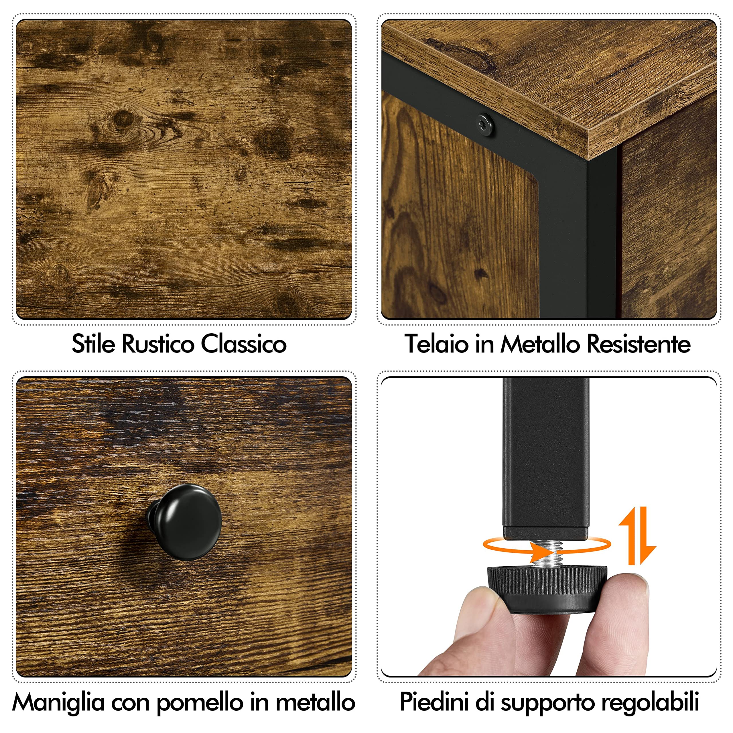 Un comodino pratico e carino? Questo mobiletto ha 3 cassetti spaziosi, in MDF e metallo, color marrone rustico. Misure 40x40x61 cm, con cassetti interni da 26x28,3x8,8 cm. Supporta fino a 22,5 kg sul piano e 3 kg per cassetto. I binari scorrono bene, le maniglie sono integrate. Perfetto per camera da letto, salotto o ingresso. Tiene in ordine遥控器, documenti, oggetti vari. Il design è vintage e si adatta a molti stili. Montaggio facile con istruzioni. Garanzia di robustezza. Prezzo ottimo per la funzionalità. Perfect for small spaces! Ordina e organizza.Caratteristiche e scheda tecnica