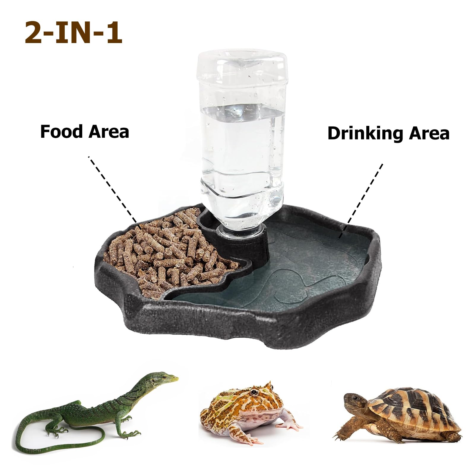 Ciotola Per Rettili - Cibo E Acqua Per Lucertole, Tartarughe E Animali Esotici - Design A Roccia Con Superficie Liscia