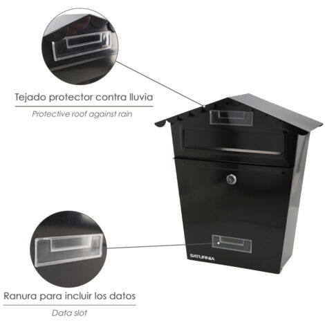 Questa cassetta della posta in stile rustico è perfetta per chi ama un look vintage! Realizzata in ferro battuto, è resistente alle intemperie e dura nel tempo. Di dimensioni compatte (35x28x11,5 cm), è ideale per spazi ridotti e può contenere buste fino al formato C5. La feritoia e la serratura sono frontali, mentre lo sportello si apre lateralmente per ritirare la posta comodamente. Include viti per il montaggio a parete e 2 chiavi. Il design con tettuccio decorativo la rende adatta per case di campagna o ambienti rustici. Colore: nero spazzolato. Età consigliata: adulti. Materiale: ferro battuto.Caratteristiche e scheda tecnica