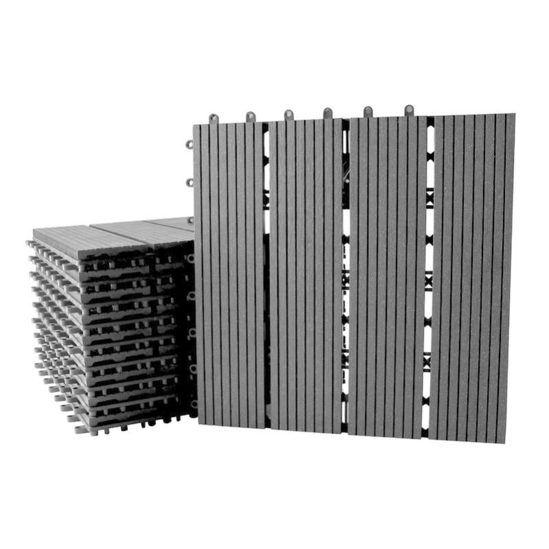 Pavimento Esterno WPC Set 12 Pezzi - Piastrelle 30x60cm, Marrone Chiaro, Antiscivolo