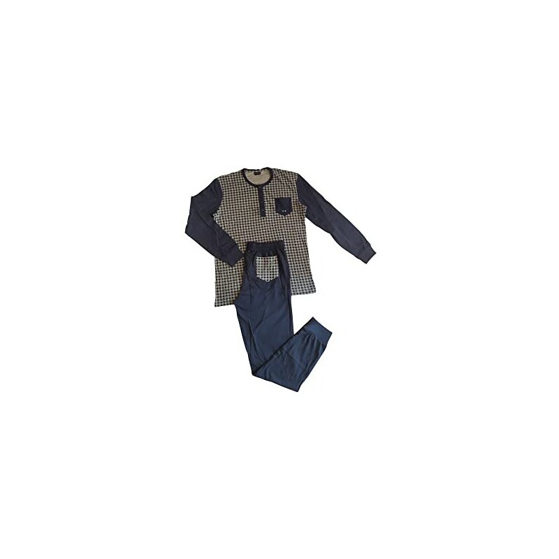 Pigiama Uomo Invernale Cotone - Set 2 Pezzi Manica Lunga Con Pantaloni Scozzesi