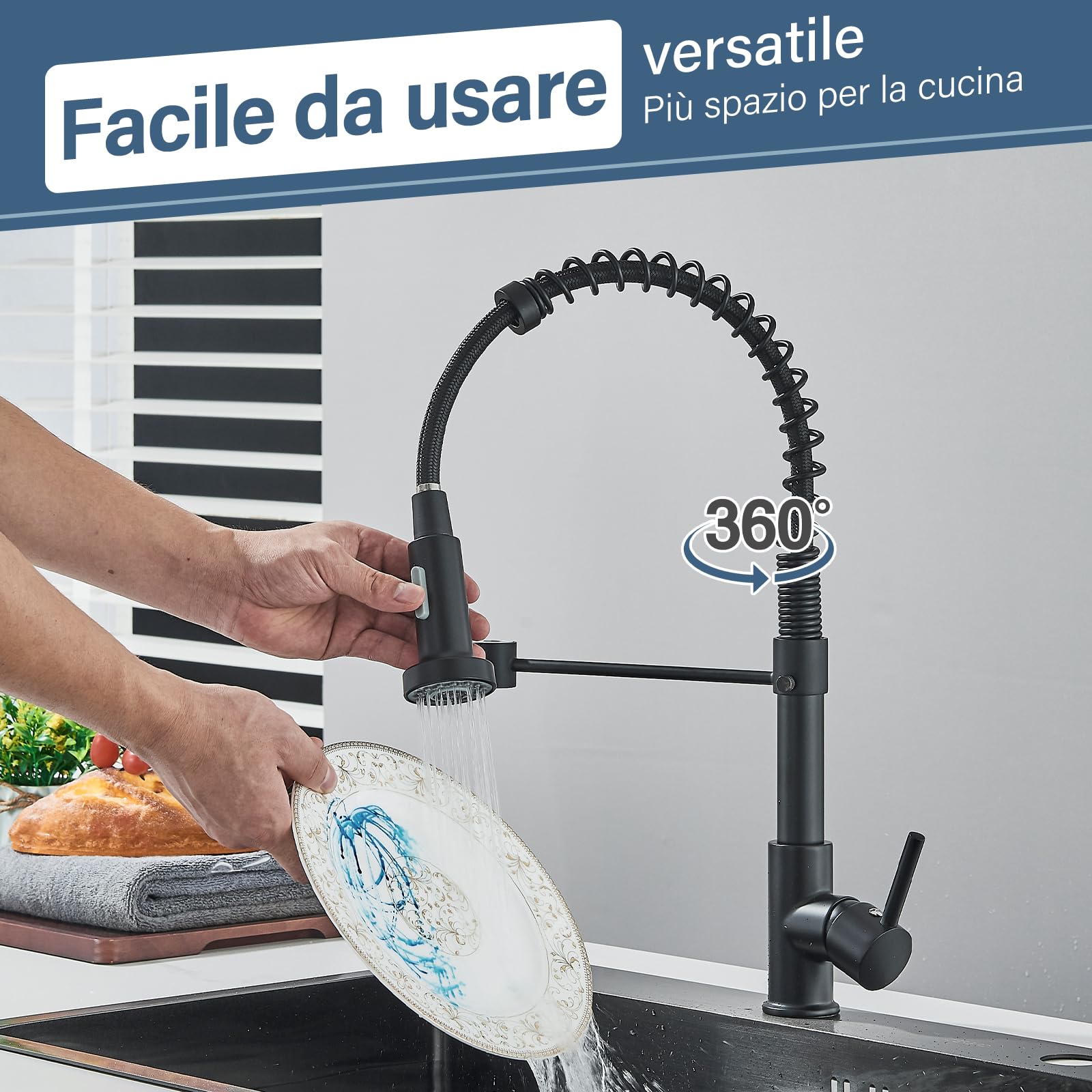 Risolvi il problema del tubo che non rientra! Questa sfera in plastica nera (6x4,5 cm) si aggiunge al tubo del rubinetto per mantenerlo retratto. Resistente al calore, si installa con un cacciavite. Adatta per la maggior parte dei rubinetti estraibili. Economica e pratica.Caratteristiche e scheda tecnica