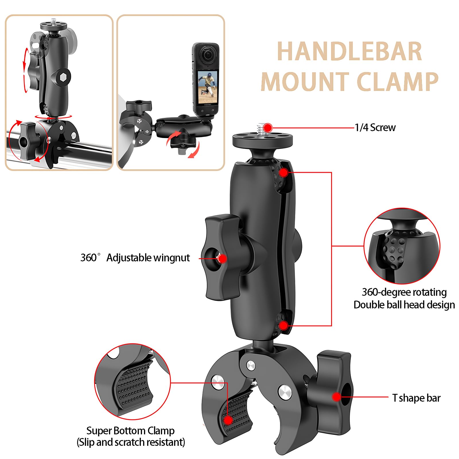 Cage Per Insta360 X4 REYGEAK - Telaio In Alluminio Con Base Sgancio Rapido, Copertura Silicone E Filettatura 1/4