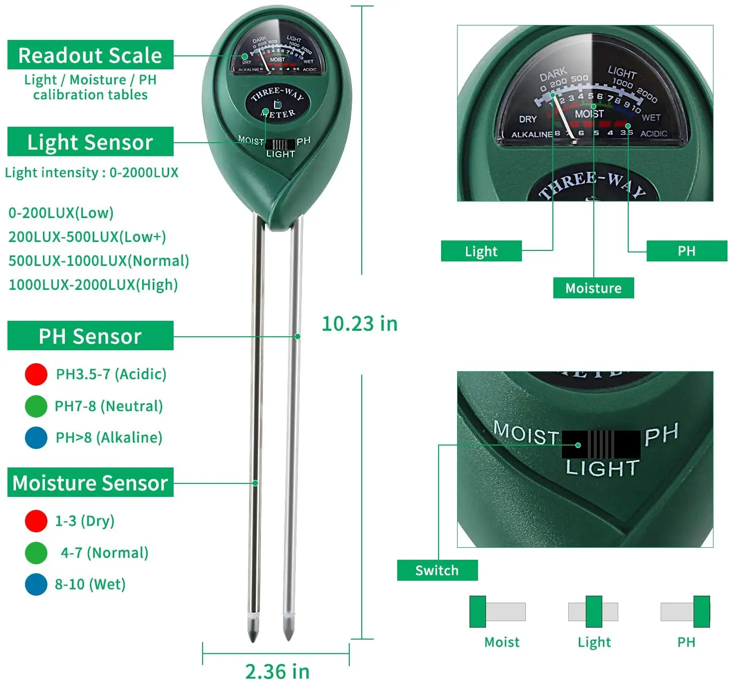Sensore 4 In 1 Per Piante - Misura Umidità, Luce, Fertilità E Temperatura, Bluetooth