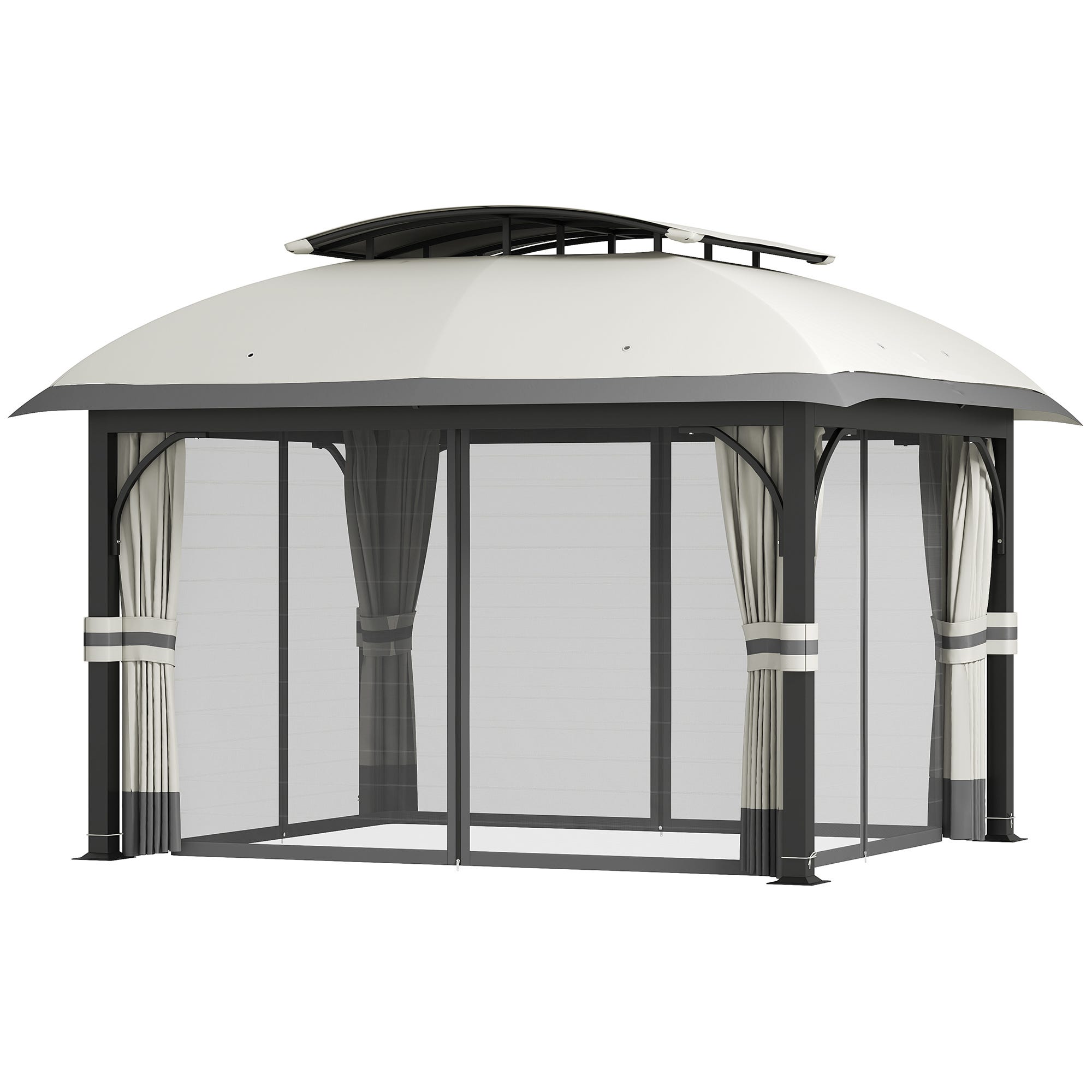 Gazebo Da Giardino 3x3m Outsunny - Con Zanzariera E Tetto In Poliestere Beige