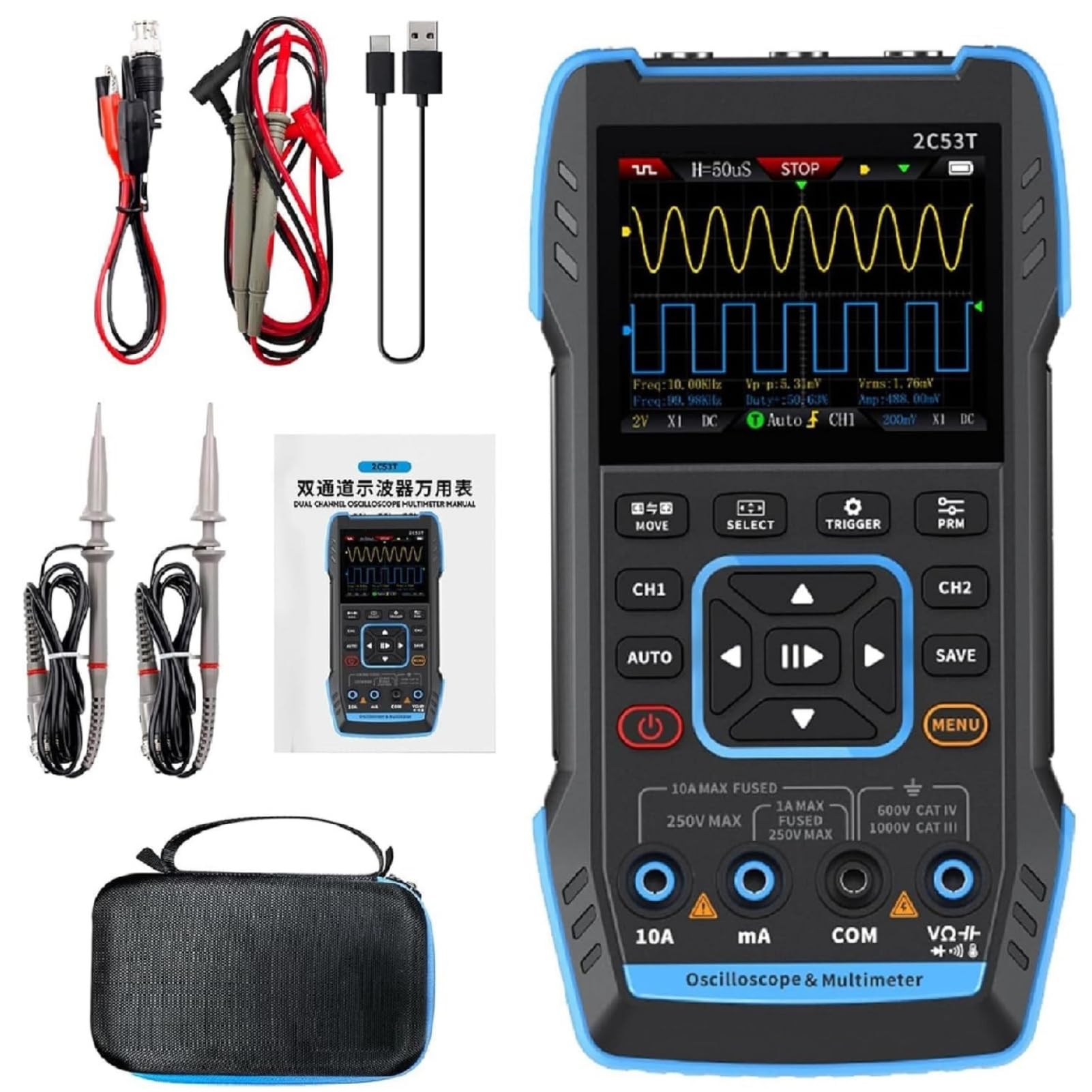 Questo multimetro ANENG 621A è super intelligente! Ha un touch screen a colori e modalità smart che riconosce automaticamente cosa stai misurando. Misura tensione AC/DC, corrente, resistenza, frequenza, capacità, diodi, continuità e temperatura. Display TRMS con conteggio fino a 9999 per massima precisione. Si ricarica via USB-C, ha una torcia incorporata e si spegne automaticamente per risparmiare batteria. Doppio fusibile di sicurezza, custodia antiurto e un kit completo di accessori. Per professionisti e appassionati fai-da-te!Caratteristiche e scheda tecnica