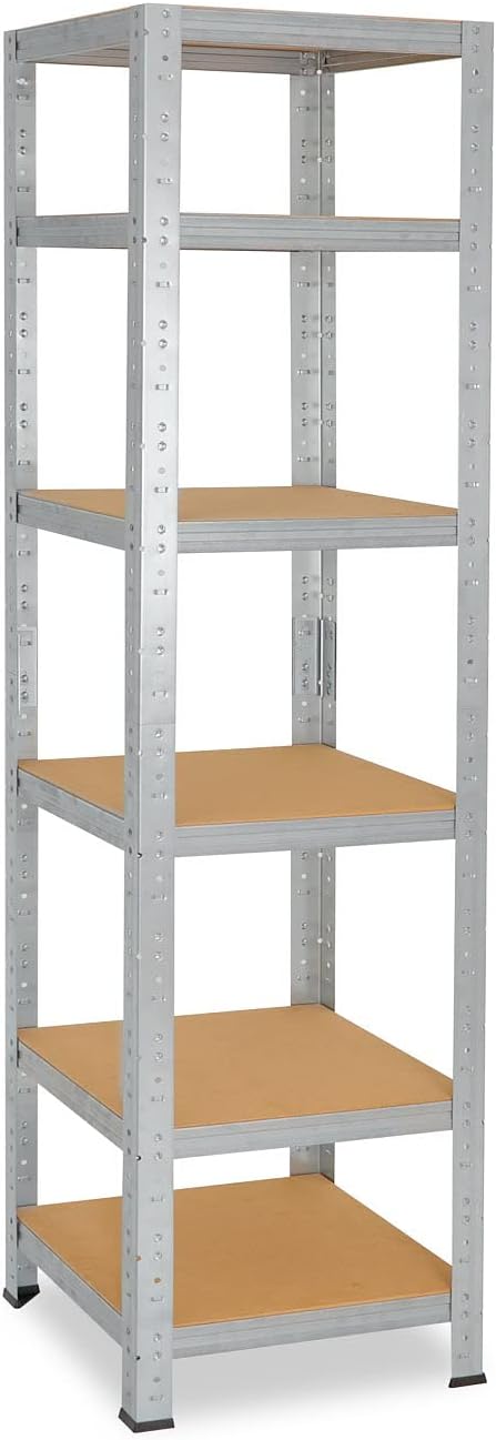 Metti ordine in garage, cantina o officina con questo scaffale metallico robusto! Misure: 230x90x60 cm (HxLxP), con 5 ripiani in HDF regolabili ogni 13 cm. Ogni ripiano supporta fino a 175 kg. Montaggio facilissimo a incastro, senza viti. Acciaio zincato per durata nel tempo. Ideale per riporre attrezzi, scatoloni, prodotti o qualsiasi cosa. Creare spazio non è mai stato così semplice!Caratteristiche e scheda tecnica