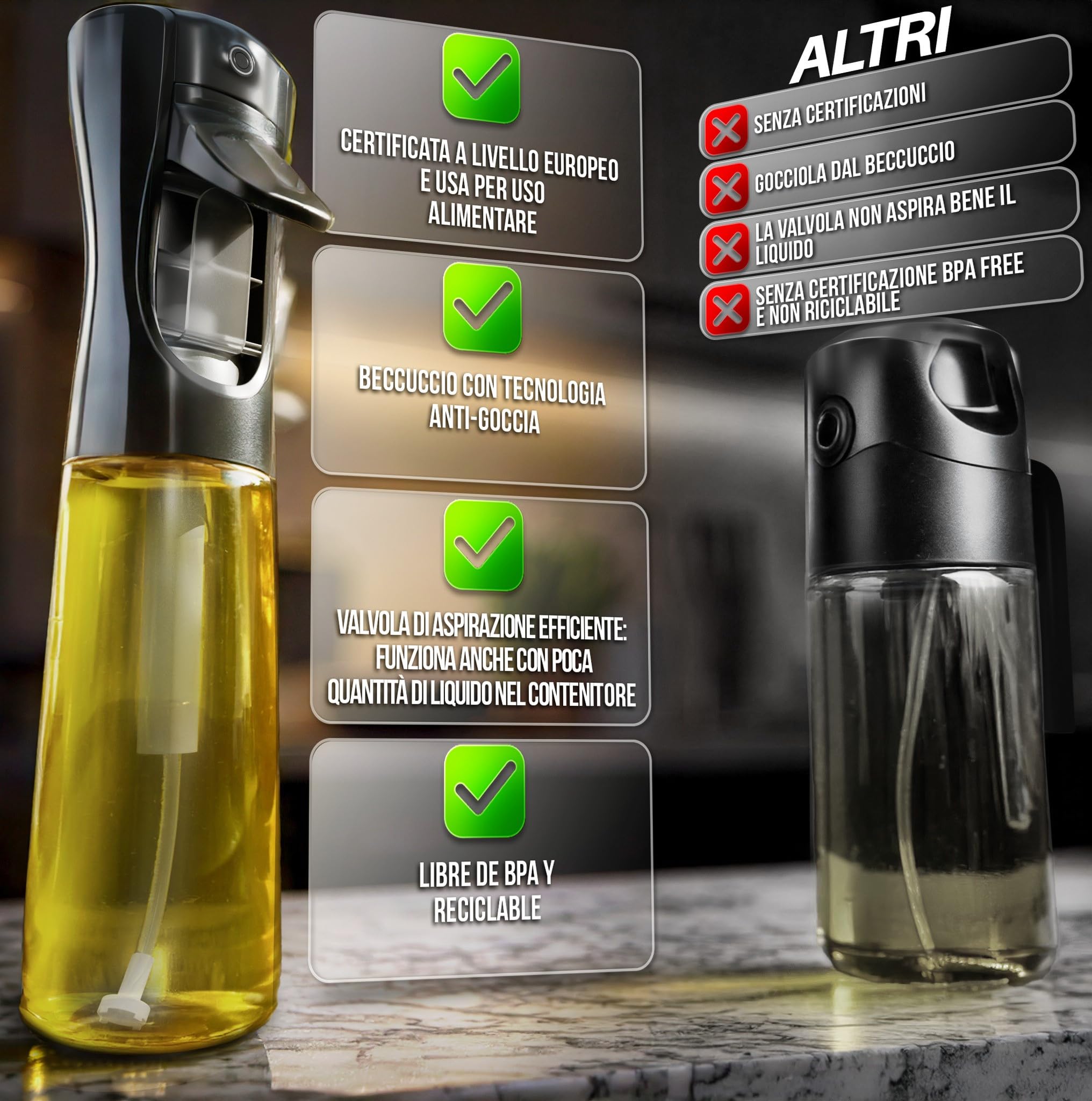 Spruzzatore Olio ActivoTex 300ml BPA Free | Vaporizzatore Per Olio D'oliva E Aceto | Dosatore A Nebbia Fine Per Cucina