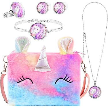 Set Gioielli Unicorno Per Bambine UYDF - Collana, Braccialetto, Orecchini E Anello Regolabile