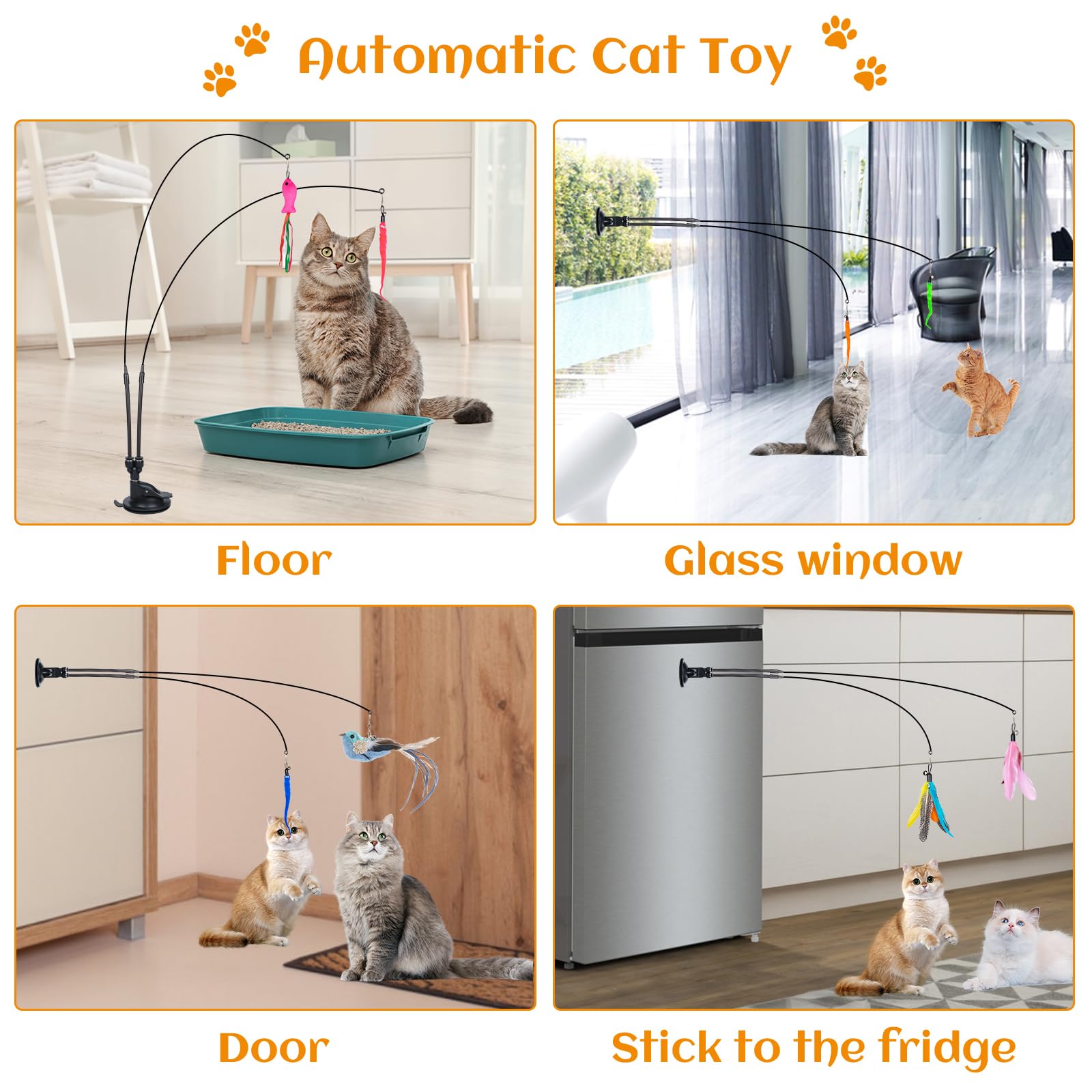 2 Bacchette Giocattolo Per Gatti Con Piume E Campana - Gioco Interattivo Con Pompon E Piume Intercambiabili