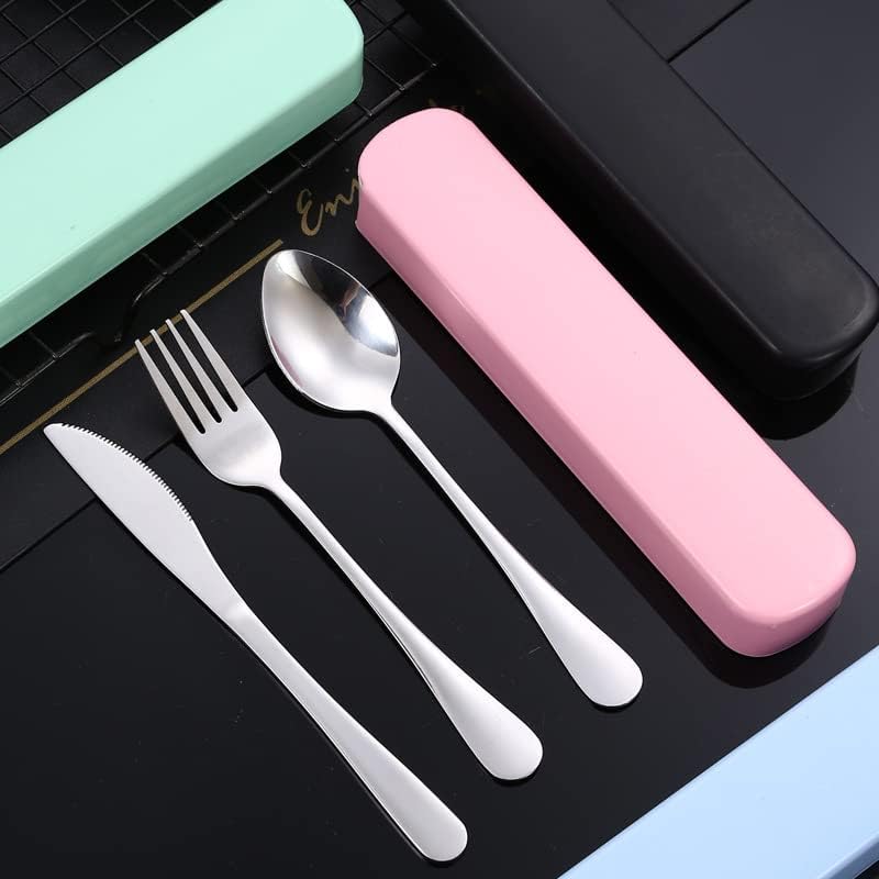 Set Posate In Acciaio Inox Da Viaggio - 4 Pezzi, Con Custodia, Per Campeggio, Ufficio, Scuola