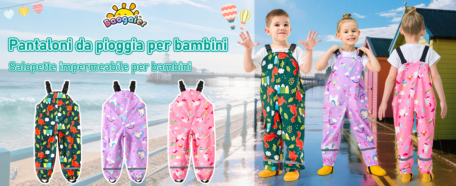 Finalmente dei pantaloni che non temono il maltempo! Perfetti per i tuoi bambini che amano giocare all'aperto, questi pantaloni sono completamente impermeabili, antivento e traspiranti. I dettagli catarifrangenti aumentano la sicurezza quando c'è poca luce, così puoi stare tranquillo mentre loro si divertono. Sono unisex, quindi vanno bene sia per maschietti che per femminucce. Ideali per correre sotto la pioggia, saltare nelle pozzanghere o fare escursioni in montagna. Realizzati con materiali resistenti ma leggeri, non limitano i movimenti e sono comodi da indossare tutto il giorno. Attenzione alle taglie: sono asiatiche, quindi controlla bene la tabella misure prima di ordinare e se hai dubbi contattaci! La praticità incontra la sicurezza e il divertimento.Caratteristiche e scheda tecnica