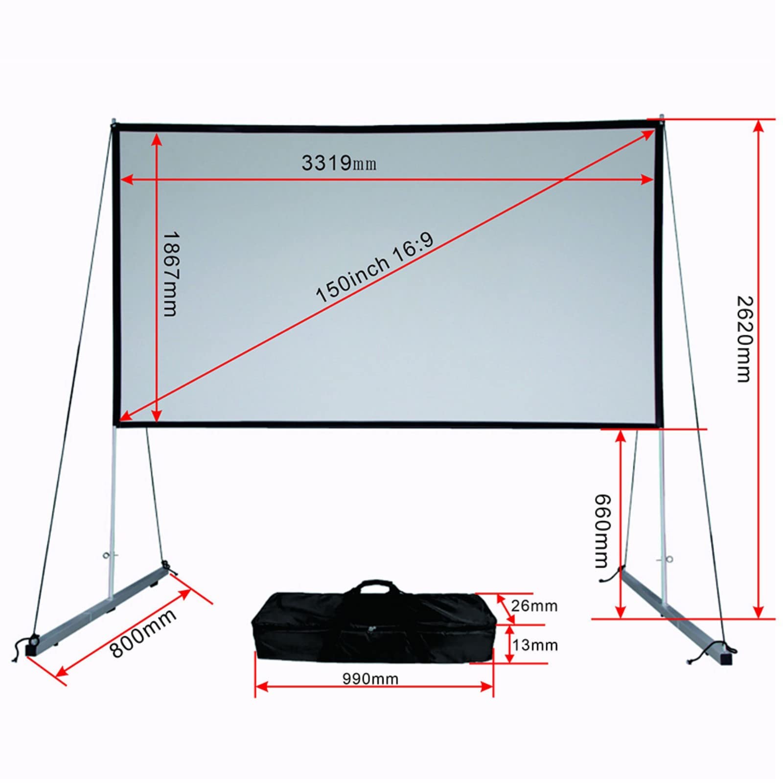 Questo schermo per proiettore è praticissimo! È una tenda in tessuto di poliestere che si piega e si trasporta facilmente. La superficie bianca diffonde la luce in modo uniforme ed è anti-riflesso, così l'immagine è nitida e non stanca gli occhi. Ha i fori per appendarlo velocemente a una parete o a una cornice. Il bordo nero è spesso 3cm. Perfetto per serate cinema in salotto, proiezioni in giardino o anche per presentazioni. Lavabile con un panno umido (no lavatrice). Disponibile anche in 84 e 100 pollici!Caratteristiche e scheda tecnica