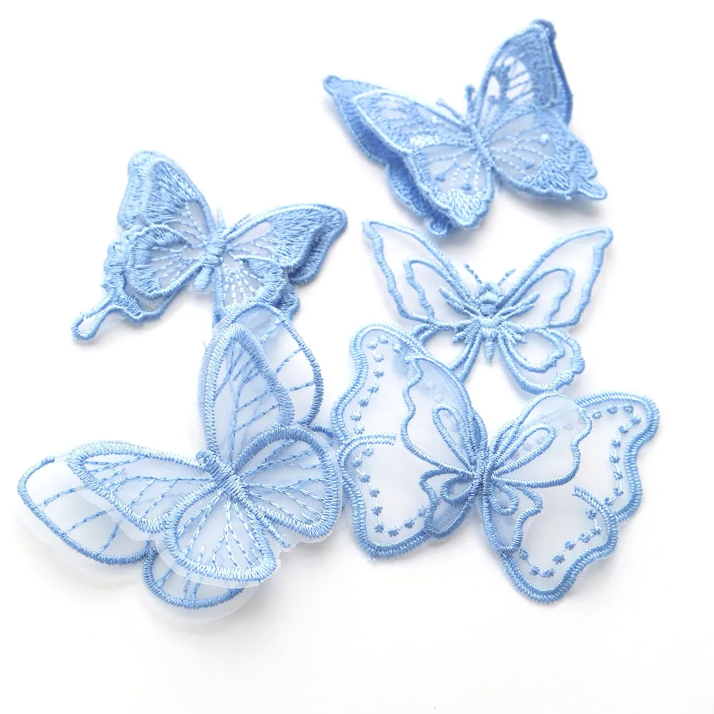 Ricami Floreali Con Paillette Set 8 Pezzi - Decorazioni In Pizzo Blu Per Abiti E Costumi