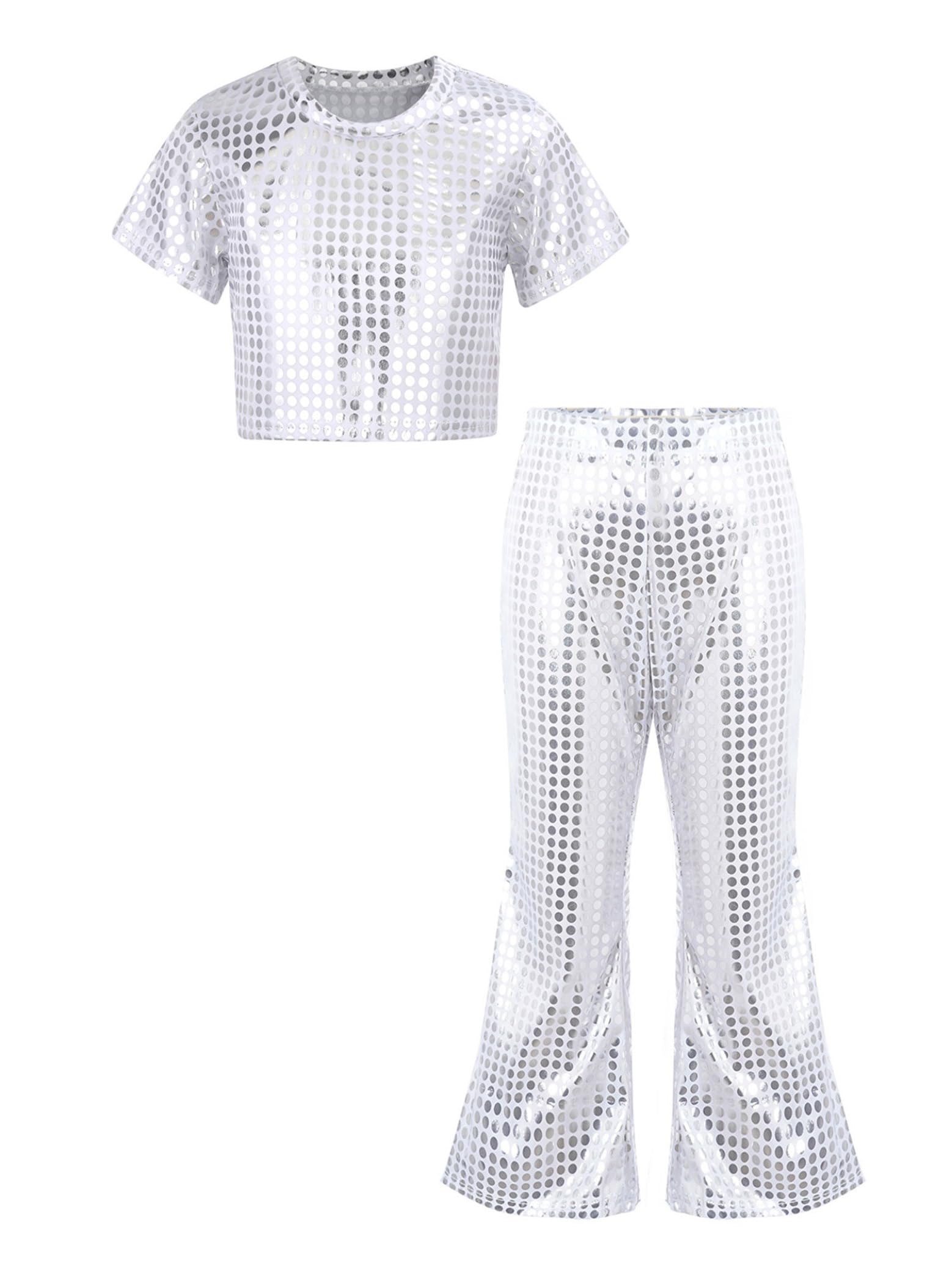 Tuta Sportiva Bambina - Canotta Crop Top E Pantaloncini, Per Danza, Ginnastica, Yoga, Nylon+Spandex