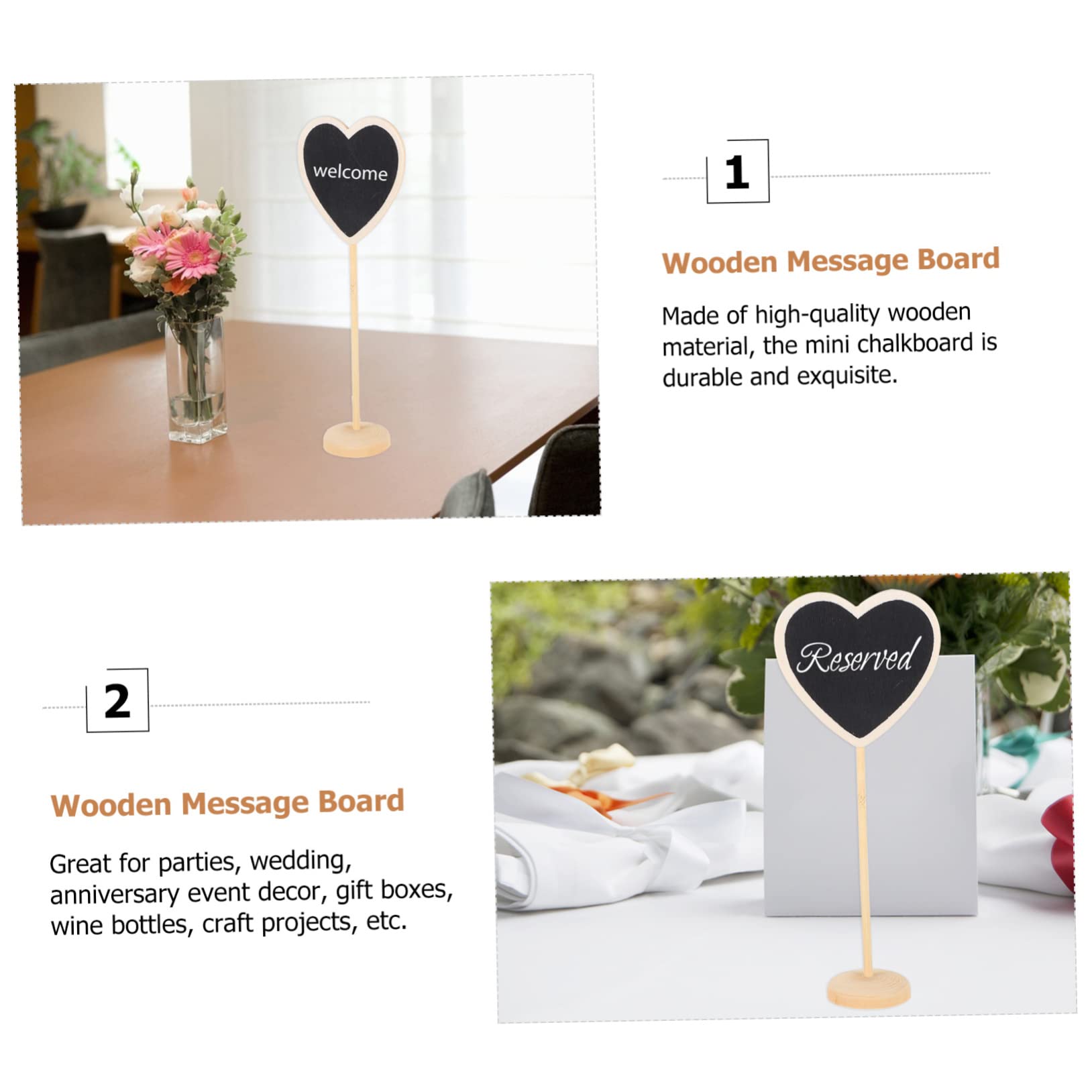 Set di 24 mini lavagne in legno con cancellino, penna e supporto. Misurano 9.9x7.4 cm, super carine e versatili. Le usi per segnaposto a matrimoni, cartellini prezzi al ristorante, etichette per buffet o messaggi in casa. Il legno è naturale, con una pellicola protettiva che si cancella facilmente. Il supporto è removibile, così le puoi appoggiare o appendere. Ideali per party, eventi o come decorazione creativa. Confezione completa, nulla da aggiungere. Perfect per chi organizza spesso o ama il fai-da-te!Caratteristiche e scheda tecnica