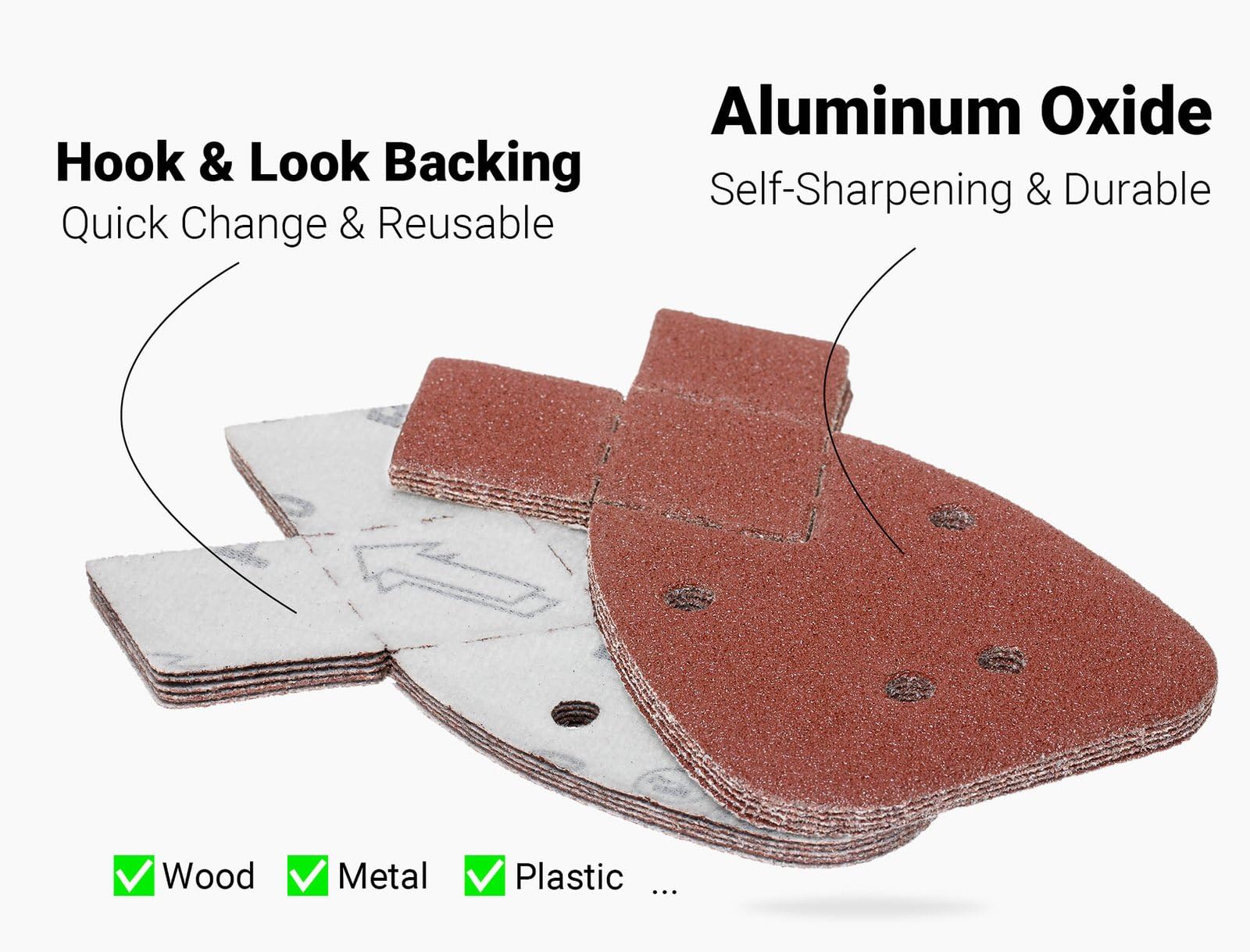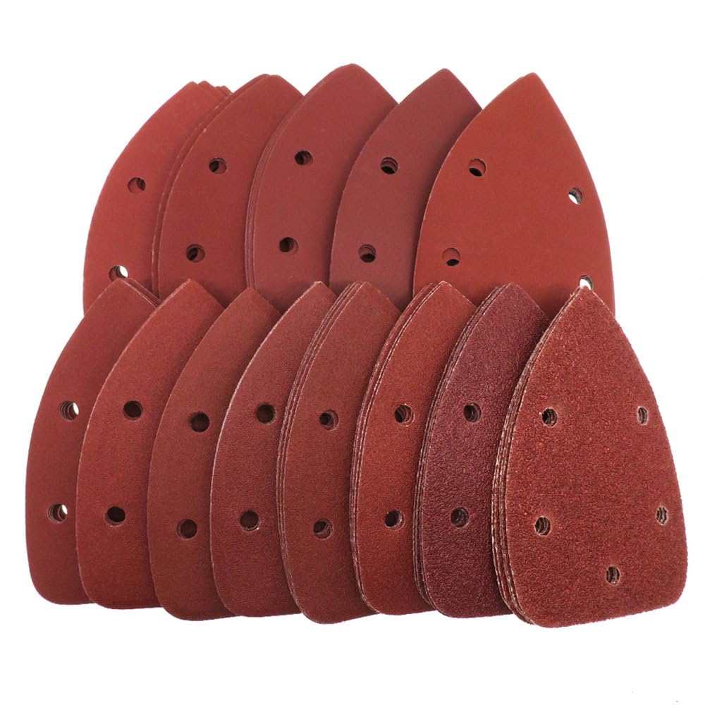 Devi levigare superfici curve o angoli? Queste 60 carte vetrate triangolari sono perfette! Formato 92x140 mm, con fori per l'aspirazione e retro in velcro per fissarle alla levigatrice delta. 6 granature: 40, 60, 80, 120, 180, 240 (10 pezzi ciascuna). Materiale ossido di alluminio, durature e antistatiche. Per legno, metallo, plastica, vernici... Ideali per fai da te o professionisti. Risparmia e lavora con precisione!Caratteristiche e scheda tecnica