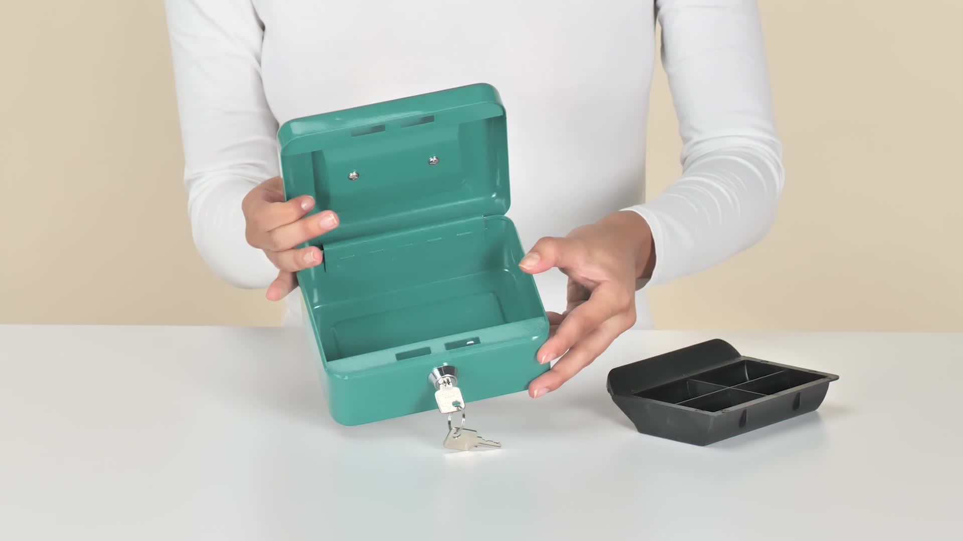 Vuoi tenere al sicuro soldi, gioielli o documenti? Questa cassetta portavalori Viro è perfetta! È blu, misura 300x240x88 mm, e ha un sistema a combinazione con 1000 possibilità, quindi solo tu puoi aprirla. Dentro c'è una vaschetta per monete, così tutto è organizzato. La maniglia in acciaio cromato la rende facile da trasportare. Compatta ma capiente, è ideale per casa, ufficio, o dove vuoi te. Pratica, sicura e pure carina: che combo!Caratteristiche e scheda tecnica