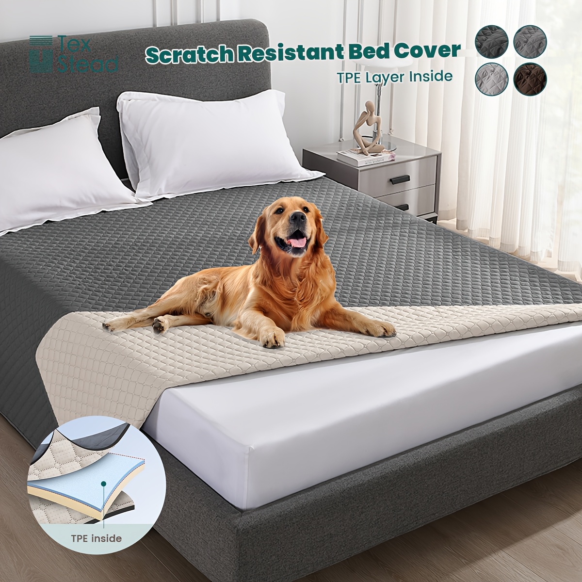 Finalmente una soluzione per chi lascia gli animali sul letto o sul divano! Questa copertura protettiva è impermeabile, traspirante e non tossica, perfetta per proteggere lenzuola e mobili da peli, sporco e piccoli incidenti. È reversibile con due tonalità, così pu cambiare look a piacere. Leggera e comoda, non ti accorgi nemmeno di averla addosso di notte. Disponibile in formati king e queen size, copre tutto il letto ed è adatta per cani e gatti di tutte le taglie. Si lava in lavatrice ed è facile da asciugare. Dormi sereno senza preoccuparti di continui lavaggi o di danni al materasso. Un must per ogni amante degli animali!Caratteristiche e scheda tecnica