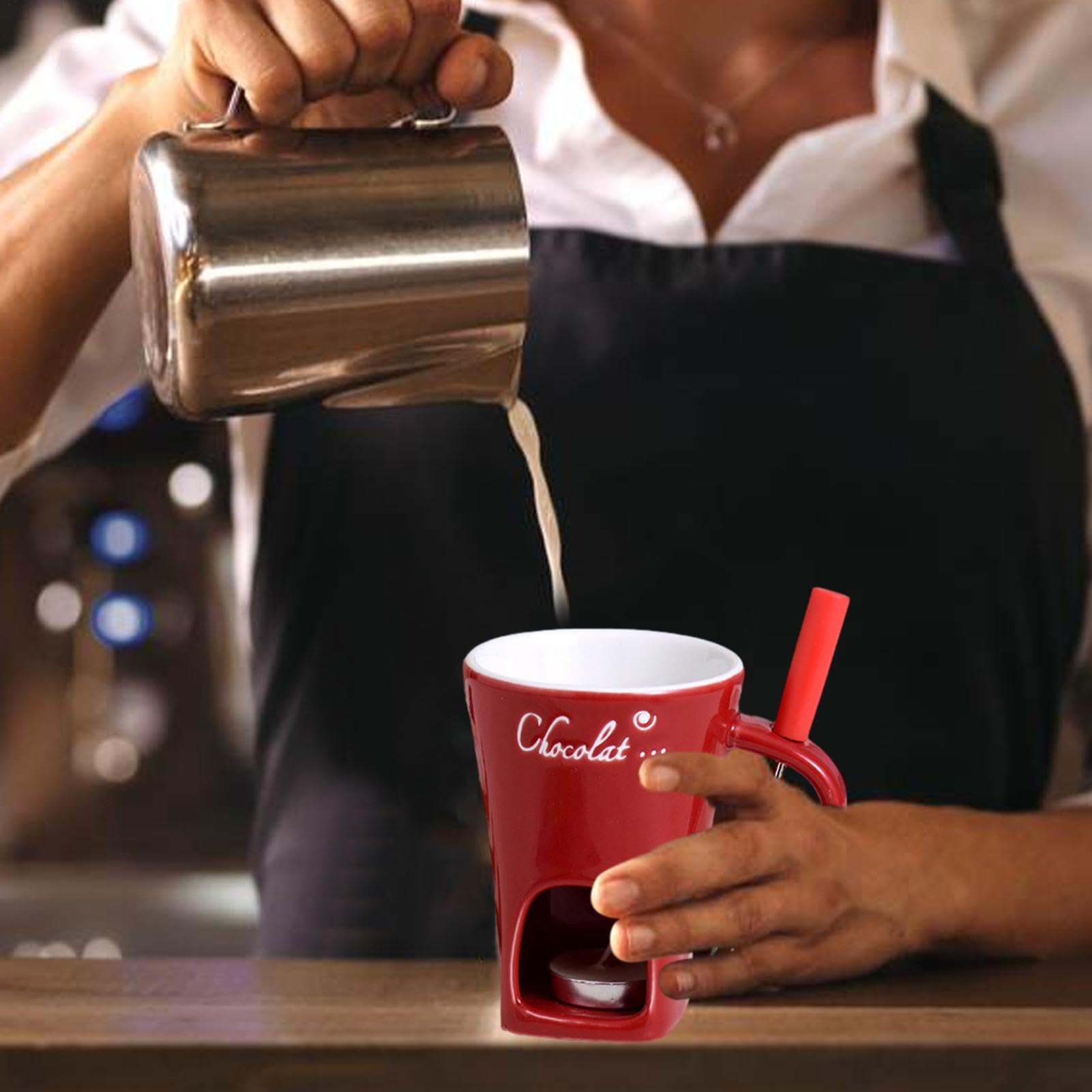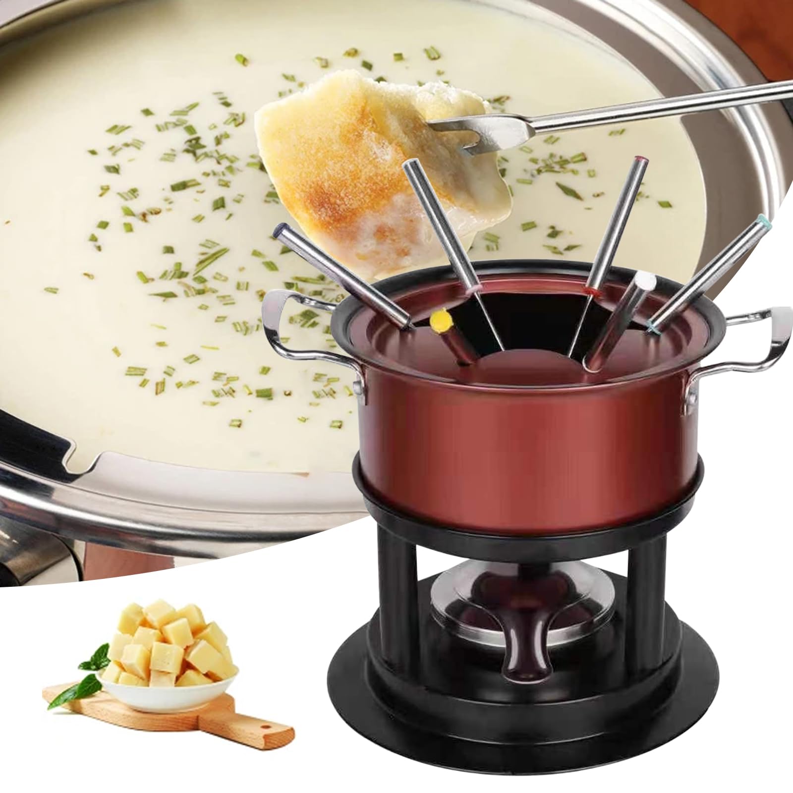 Serate con gli amici? Questa fonduta elettrica da 2 litri è ideale per 8 persone! Il caquelon in acciaio antiaderente si scalda uniformemente a 800W, e il supporto in bambù è elegante e sicuro. Include 8 forchette colorate e un collarino antischizzi. Perfetta per formaggio, carne o cioccolato. Divertimento garantito!Caratteristiche e scheda tecnica