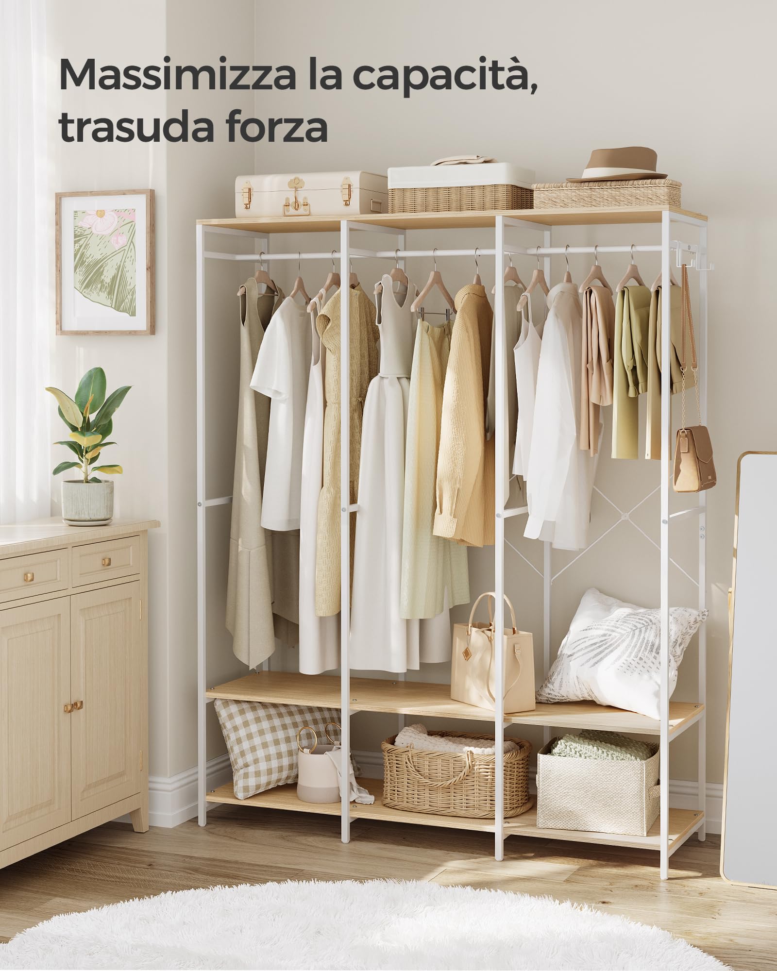 Questo armadio Dotan II è spazioso e moderno! Misura 200x215x58 cm, ha ante scorrevoli con guide in alluminio e maniglie a listelli. Include un'asta appendiabiti e scomparti ampi, con una portata massima di 162 kg. Fatto in pannello laminato 16 mm con bordi in PVC. Attenzione: va montato sdraiato per prima cosa, poi posizionato. Nessun servizio di montaggio incluso, ma le istruzioni ci sono. Perfect per camera da letto o corridoio, per tenere tutto in ordine! 🚪👕Caratteristiche e scheda tecnica