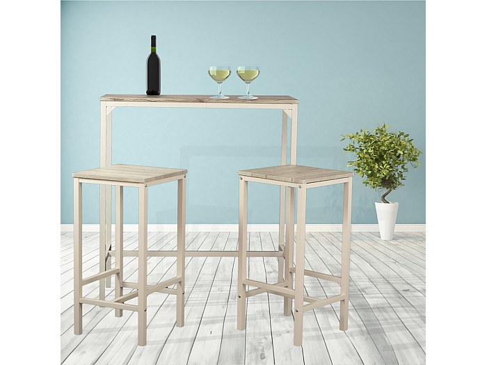 Se cerchi un tavolo bar per la tua cucina o soggiorno, questo set è perfetto! Il tavolo è alto 90 cm, misura 100x60 cm e ha un bel colore rovere. È fatto in MDF con gambe in metallo resistenti, e supporta fino a 80 kg. Le sedie sono comode, con poggiapiedi integrato, e ognuna regge fino a 100 kg. Il design è moderno e salvaspazio: quando non le usi, le sedie si infilano sotto il tavolo. È facile da montare (ci vogliono circa 30 minuti) e il piano è impermeabile e facile da pulire. Ideale per cene con amici o per una colazione veloce al bar!Caratteristiche e scheda tecnica