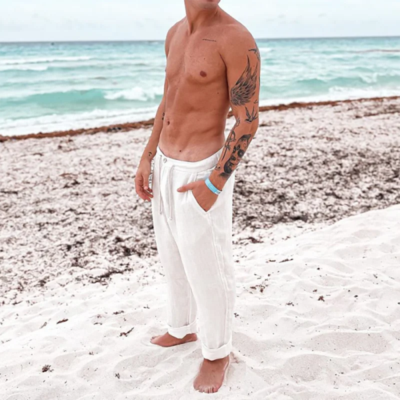 Pantaloni Uomo Gamba Larga - Stile Giapponese, Yoga, Hip Hop Baggy, Vita Bassa Con Lacci, 100% Poliestere